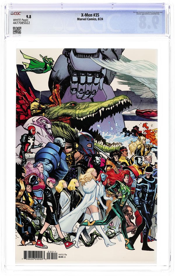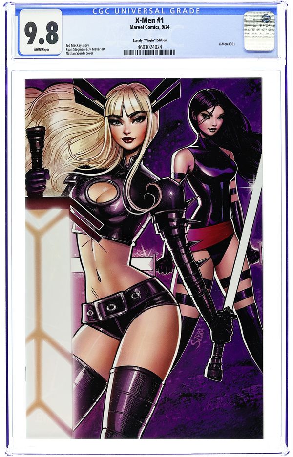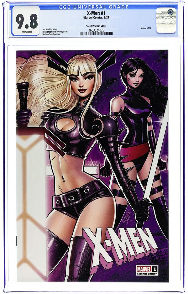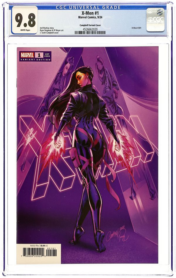 Limited 1 for 100 Retailer Incentive Variant Cover. Written by Jed MacKay. Art by Ryan Stegman. Cover by J Scott Campbell. FROM THE ASHES! Krakoa is gone, ORCHIS has fallen...but the X-Men remain, always. Cyclops leads, because that is what he does. Beast builds, because that is what he does. And from their new home in Alaska, the X-Men raise a flag of defiance. Mutant business is their business. Join CYCLOPS, BEAST, MAGNETO, PSYLOCKE, KID OMEGA, TEMPER, MAGIK and JUGGERNAUT as new forces in the world move into position, battling for the destiny and philosophy of the mutant species. 40 pages, full color. Rated T+ Cover price $5.99.