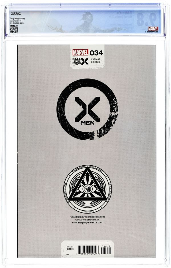 Comics Illuminati (Unknown Comics, Comic Traders, and Sleeping Giant) Exclusive Variant Cover by Jay Anacleto. Written by Gerry Duggan. Art by Joshua Cassara. THE END IS NIGH! The Krakoan Age is nearly at an end…and what might be the final battle of the heroes of Krakoa! One last stop before the fall and rise come to their conclusion…and everything changes! 28 pages, full color. Rated T+