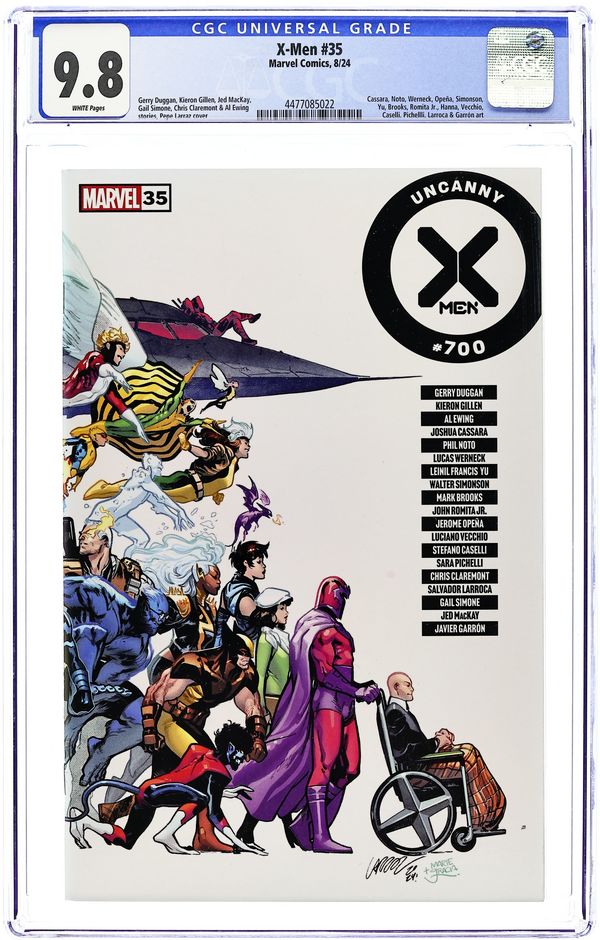 Written by Gerry Duggan; Al Ewing, Kieron Gillen. Art by Phil Noto; Marvel Various. Cover by Pepe Larraz. THE END OF AN ERA – UNCANNY X-MEN #700! All good things must come to an end, and as good of a thing as the Krakoan era has been for mutantkind…its time has come at last. The tragedy and triumph of FALL OF THE HOUSE OF X, the madness and mystery of RISE OF THE POWERS OF X…they have all come to their end and led to this moment that will change the future of mutantkind for years to come. Written and drawn by an all-star cast of writers and artists who have shaped the Krakoan Age, this is one milestone no X-Fan will want to miss! Also featuring a story of family by X-Men master Chris Claremont…and a glimpse of things to come! 88 pages, full color. Rated T+ Cover price $9.99.