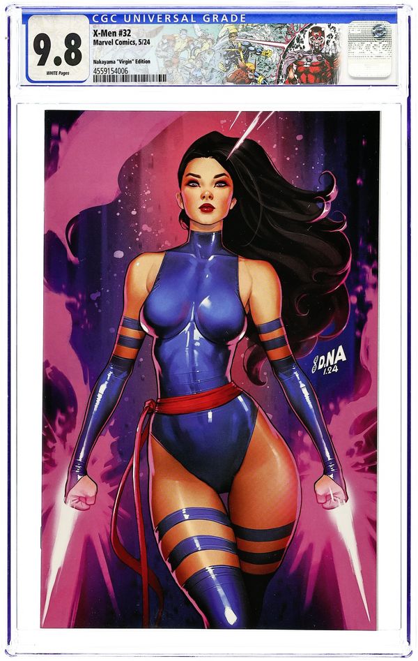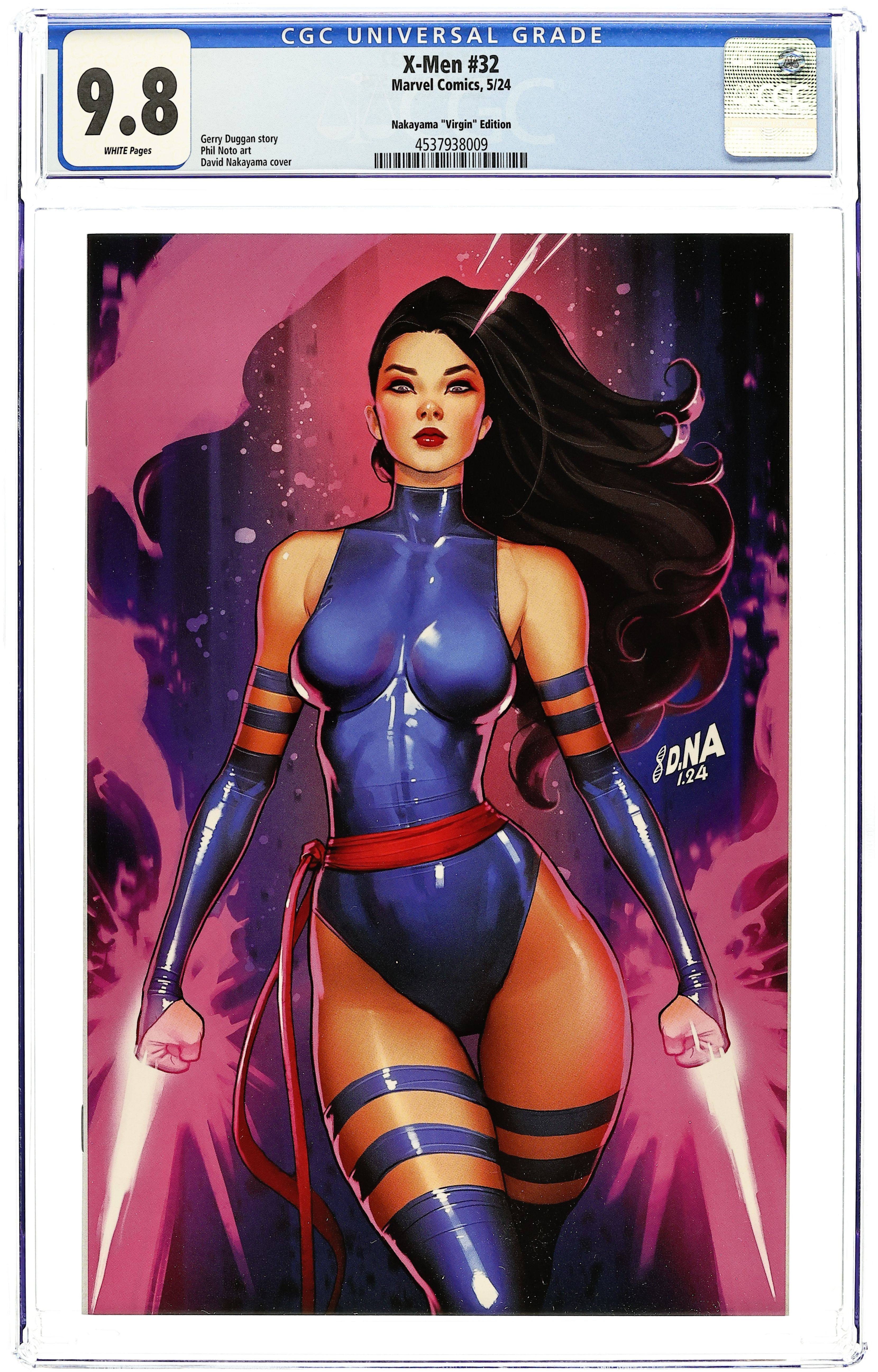 Comics Illuminati (Unknown Comic Books, Comic Traders, and Sleeping Giant) Exclusive Virgin Cover by David Nakayama. Written by Gerry Duggan. Art by Joshua Cassara. X-MEN X-SSEMBLE! If there were ever a time to rally the troops and take the fight to the enemy, it's NOW! Stand side by side with the X-Men as they head for their final stand! They can't stop ALL of us! 28 pages, full color. Rated T+ Cover price $3.99.