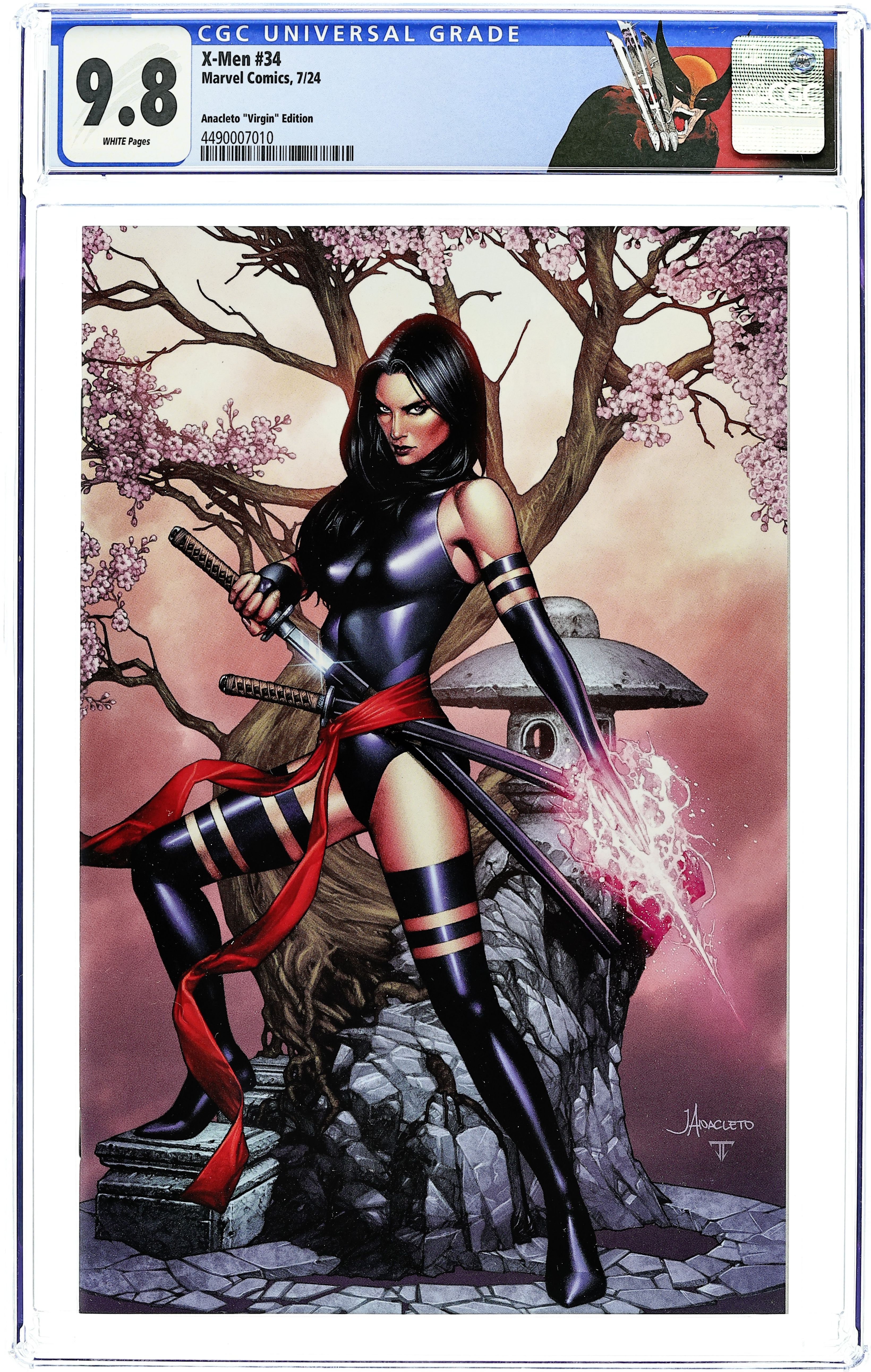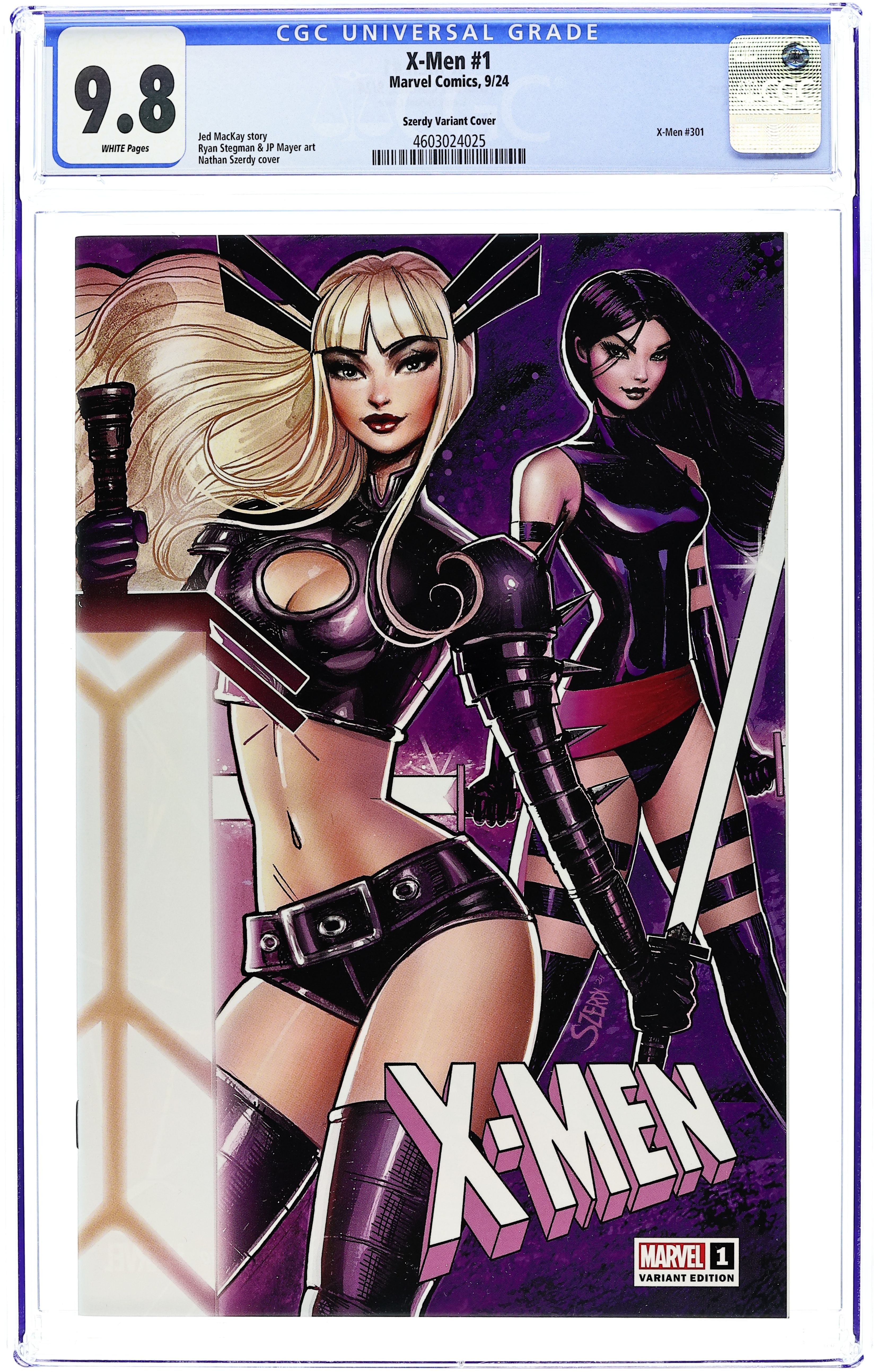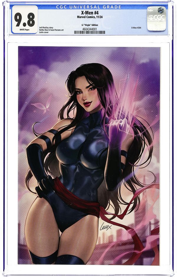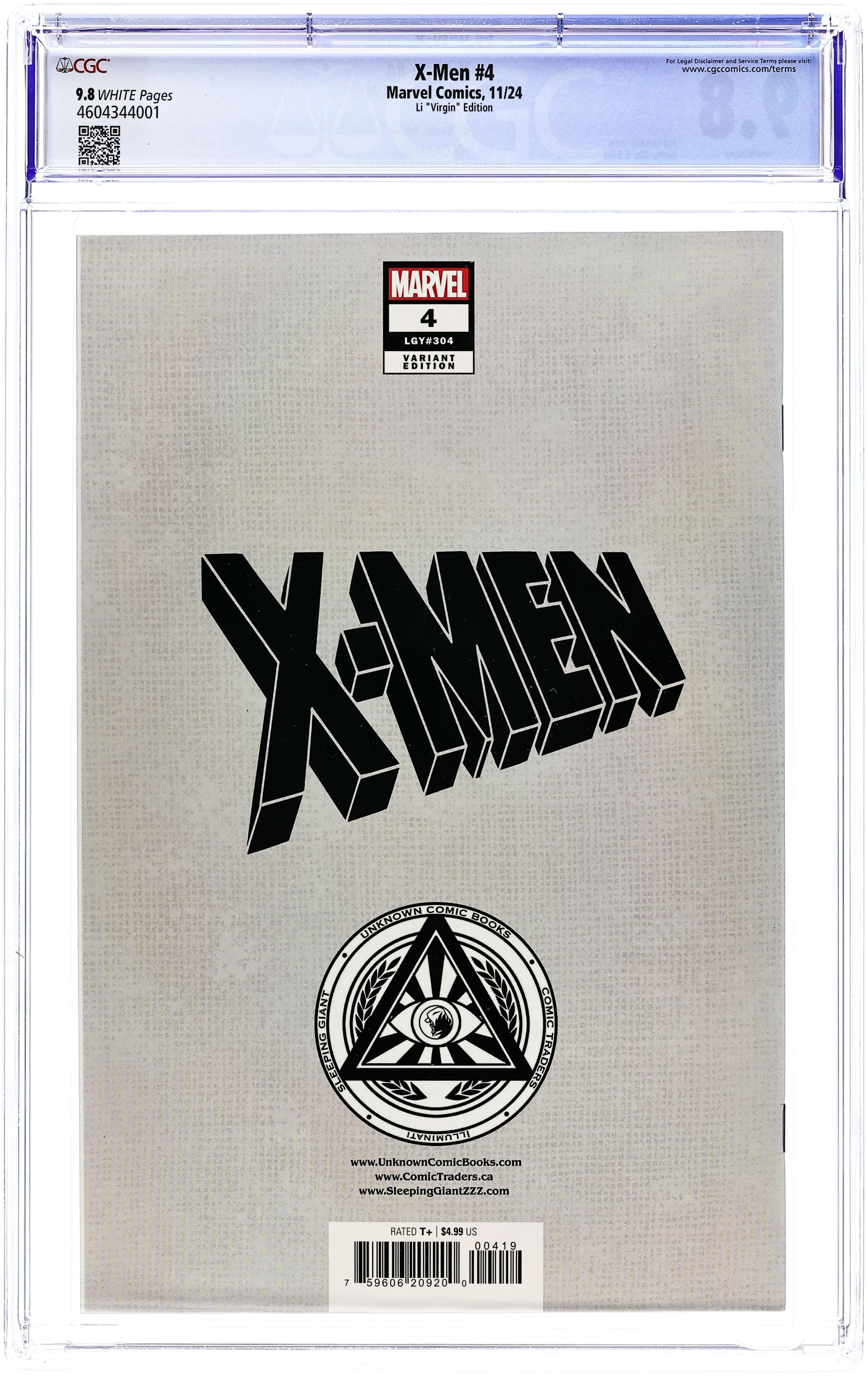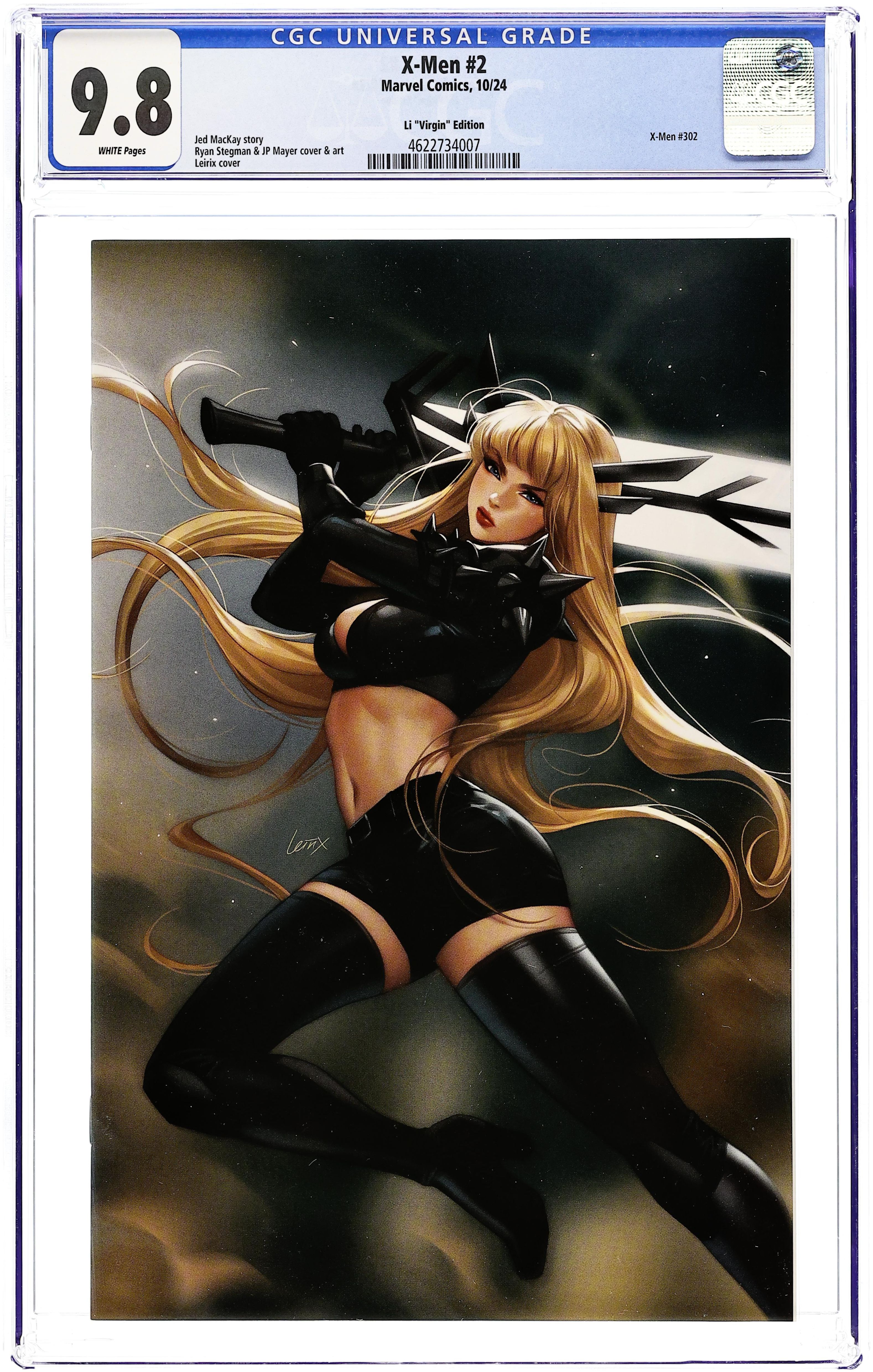 Comics Illuminati (Unknown Comic Books, Comic Traders, and Sleeping Giant) Exclusive Virgin Cover by Leirix Li. Written by Jed MacKay. Art by Ryan Stegman. INVASION! The X-Men fly to the rescue of a mutant in crisis in San Francisco. The problem? Alien invaders seem to have a similar idea. Six X-Men vs. an invading alien fleet? Sounds about right. PLUS: THE CONCLUSION OF DEADPOOL/WOLVERINE: WEAPON X-TRACTION! 32 pages, full color. Rated T+