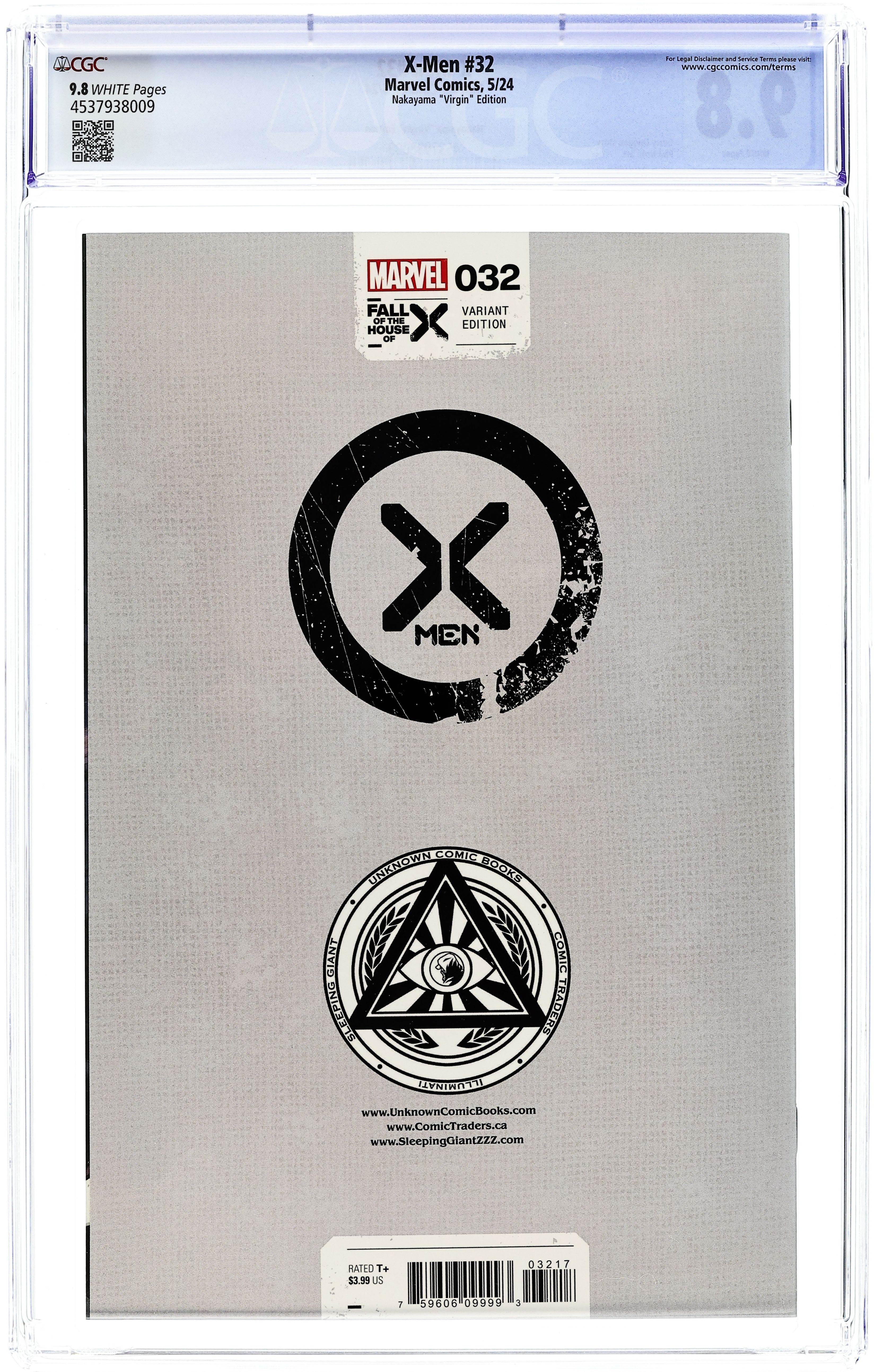Comics Illuminati (Unknown Comics, Comic Traders, and Sleeping Giant) Exclusive Virgin Cover by Jay Anacleto. Written by Gerry Duggan. Art by Joshua Cassara. THE END IS NIGH! The Krakoan Age is nearly at an end…and what might be the final battle of the heroes of Krakoa! One last stop before the fall and rise come to their conclusion…and everything changes! 28 pages, full color. Rated T+