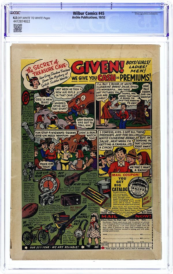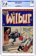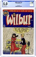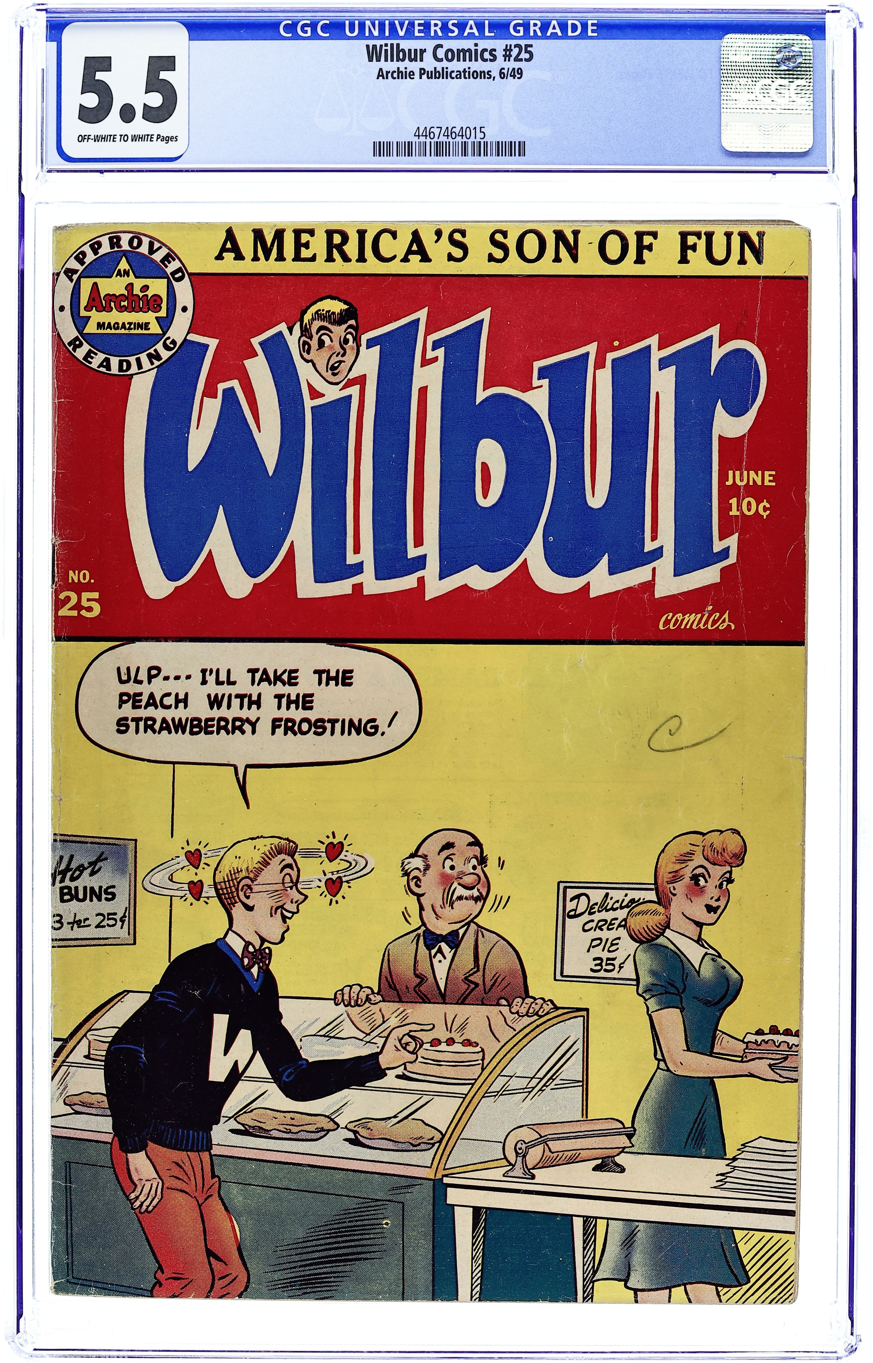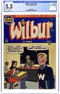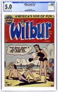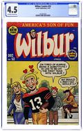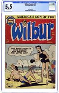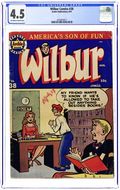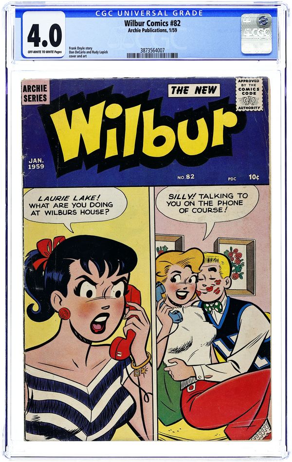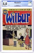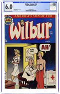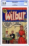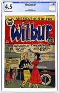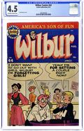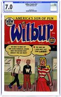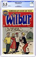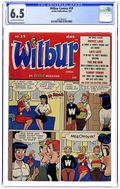 "You're Only Young Once"; Frank and Eleanor look at the photo album reliving bad memories. "Party Line Blues"; To save money, Wilbur's dad has his phone turned into a party line. Wilbur Puzzle Page. "Hair Today - Gone Tomorrow"; Red gives Wilbur a comb-cutter so he doesn't have to go to the barber's. Wilbur Quiz. "The Wolf Call!", art by Bill Vigoda; Wilbur takes Laurie Laurie to the woods. "Many Happy Returns"; Wilbur and Laurie bake a cake for Mr. Dripwaite's birthday. Untitled Katy Keene story, script and art by Bill Woggon; Katy gets Sis a toy dog. 52 pgs., full color. Cover price $0.10.