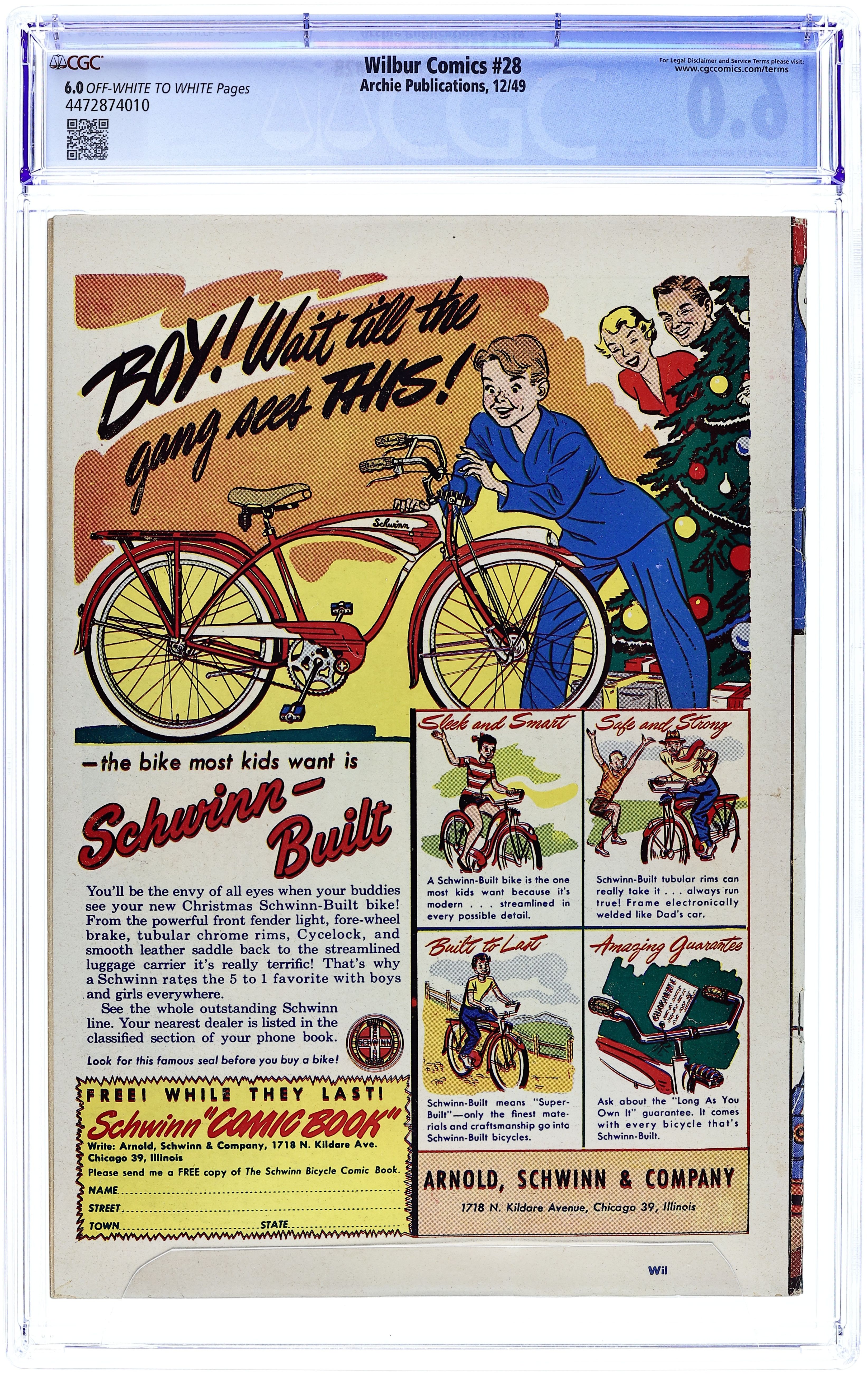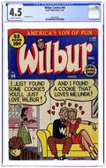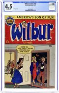 "That Old Black Magic"; Wilbur buys some magic tricks to try on Laurie. "Smell, Darn You! Smell!"; Wilbur discovers some limburger he left in his desk the previous school year. Wilbur Puzzle Page. "Clothes Make the Man"; Wilbur's mom and dad clean out the closets and put the clothes in one bag for the clothing drive and another bag for the cleaners. "Winner Take All"; Monty has Dopey sabotage Wilbur's car so he can date Laurie. "Many Slap Happy Returns"; Red messes up Mr. Wilkin's birthday party. "Food For Thought" text story, script by Ray Gill; Wilbur tries to show Red how to sell books. Untitled Katy Keene story, script and art by Bill Woggon; Katy's horoscope predicts a man with a white beard will bring gifts. 1949 Pin-Up Calendar with Katy Keene, art by Bill Woggon. 52 pgs., full color. Cover price $0.10.