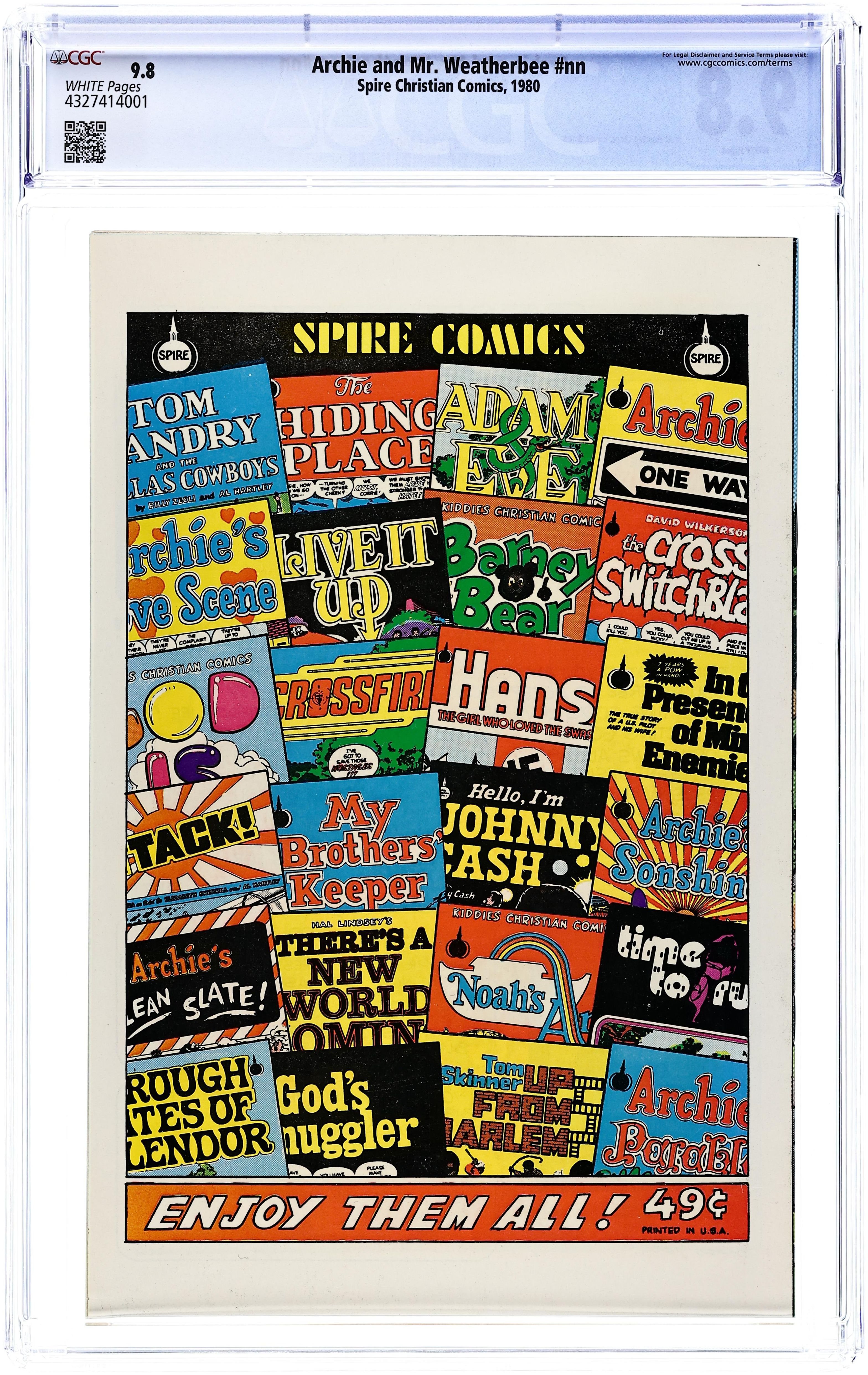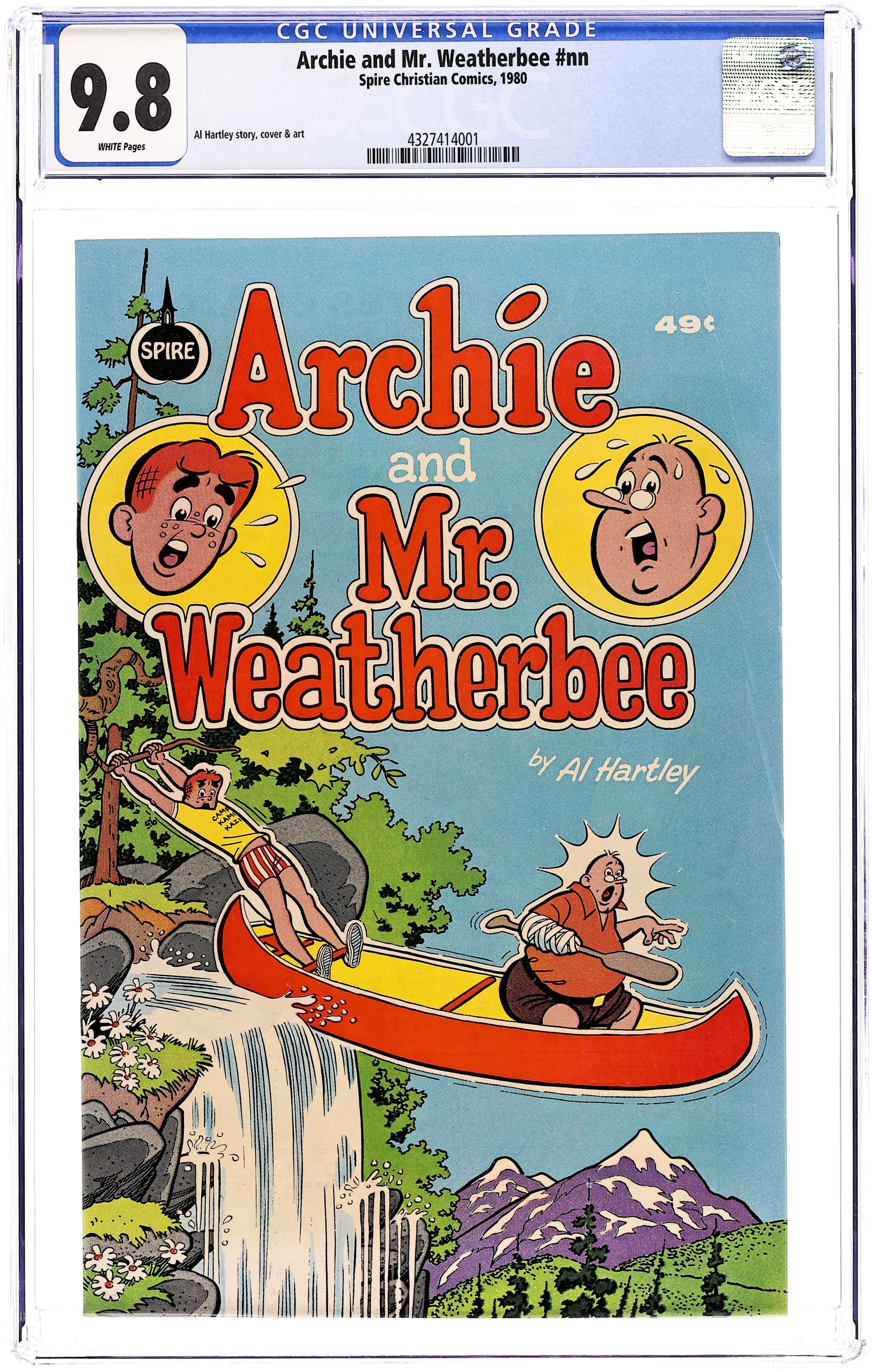 49 cent cover price edition. Mr. Weatherbee is surprised to find Archie and the gang working as counselors at the camp where he had hoped to get away from them for the summer. Despite his klutziness, Archie manages to teach the Bee a thing or two about leadership and faith. Story, art and cover by Al Hartley. 32 pages. Cover price $0.49.