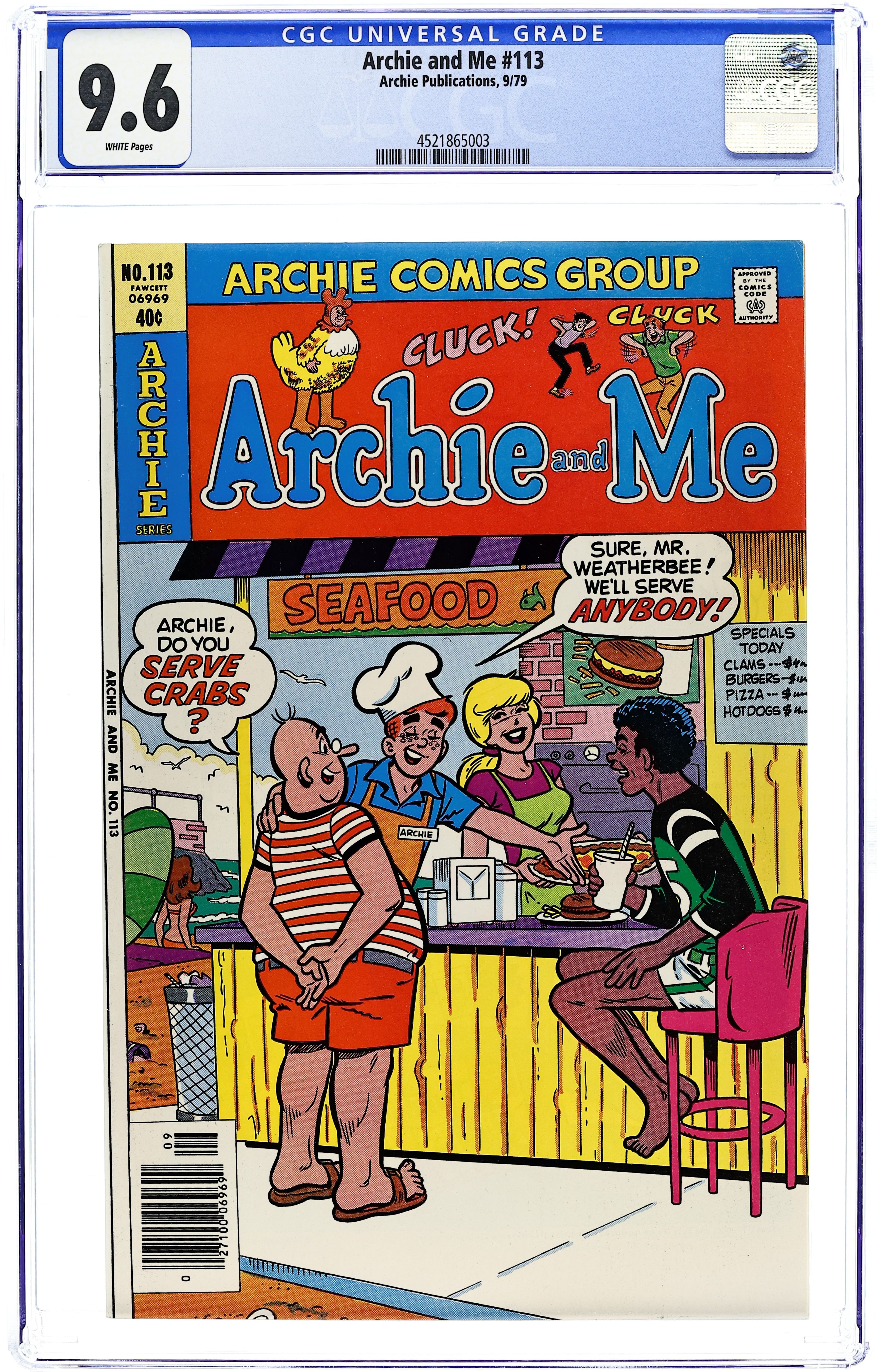 "Play Mate"; Archie and the gang arrange for a surprise birthday party at the Riverdale train station but Mr. Weatherbee tries to run away from Archie. "On Time" one-page Li'l Jinx story, script and art by Joe Edwards. Mr. Weatherbee Gag Bag. "Fowl Play"; Pop Tate helps the school buy new baseball uniforms by agreeing to donate the first day's profits of his new business venture Chicken Vittle; Mr. Weatherbee poses for publicity photos in a chicken costume and ends up getting stuck in it. "A Jog to the Jug," script by Dick Malmgren, pencils by Bob Bolling, inks by Rudy Lapick; Archie convinces Mr. Weatherbee to start jogging instead of joining a health club; of course, things go wrong. Archie Club News. "Nets to You!"; Archie tries to help Mr. Weatherbee at the beach but he refuses Archie's help because everything Archie does turns into a disaster. 36 pgs., full color. Cover price $0.40.