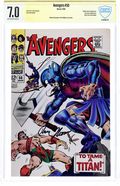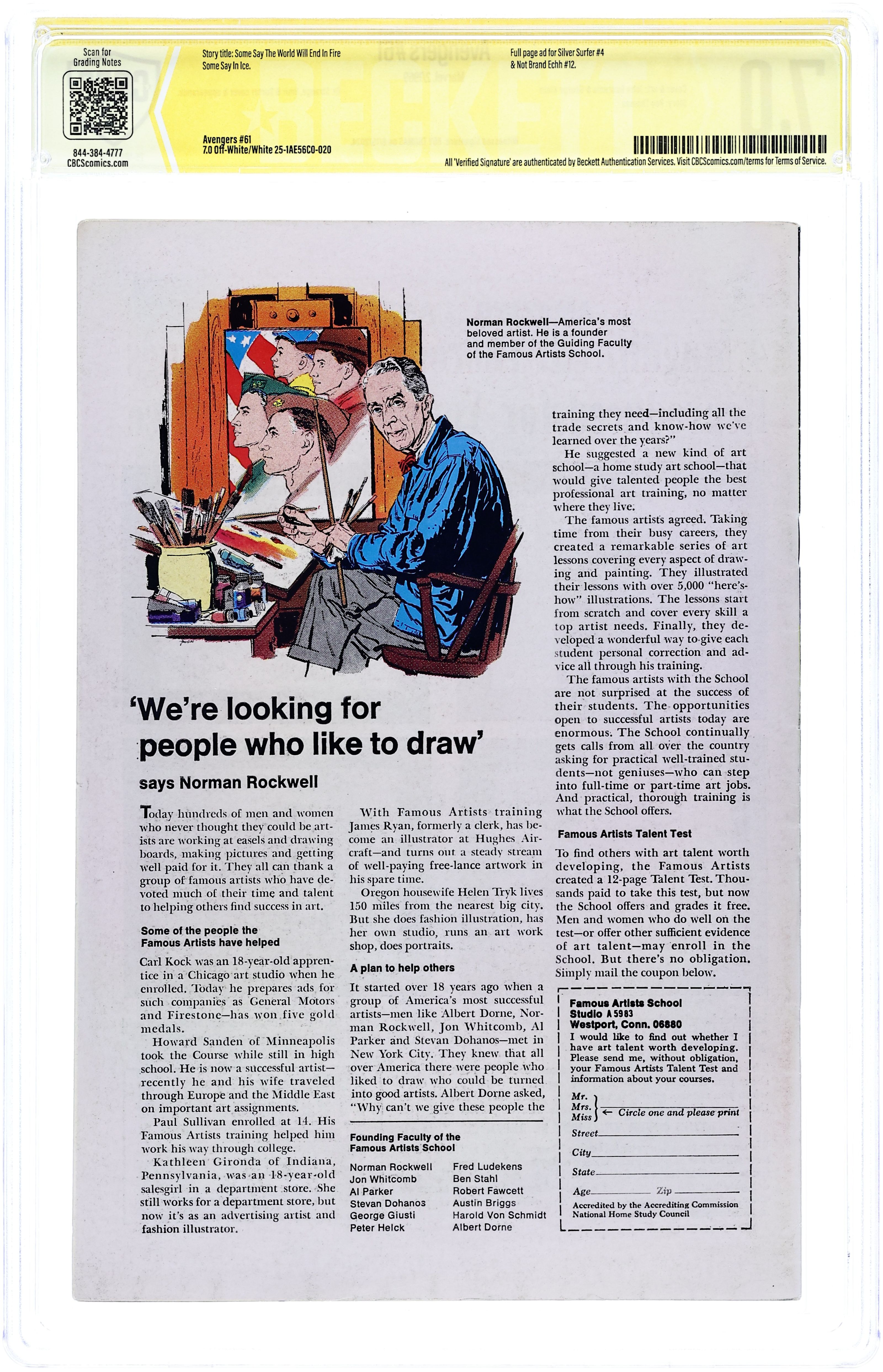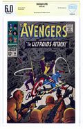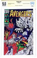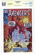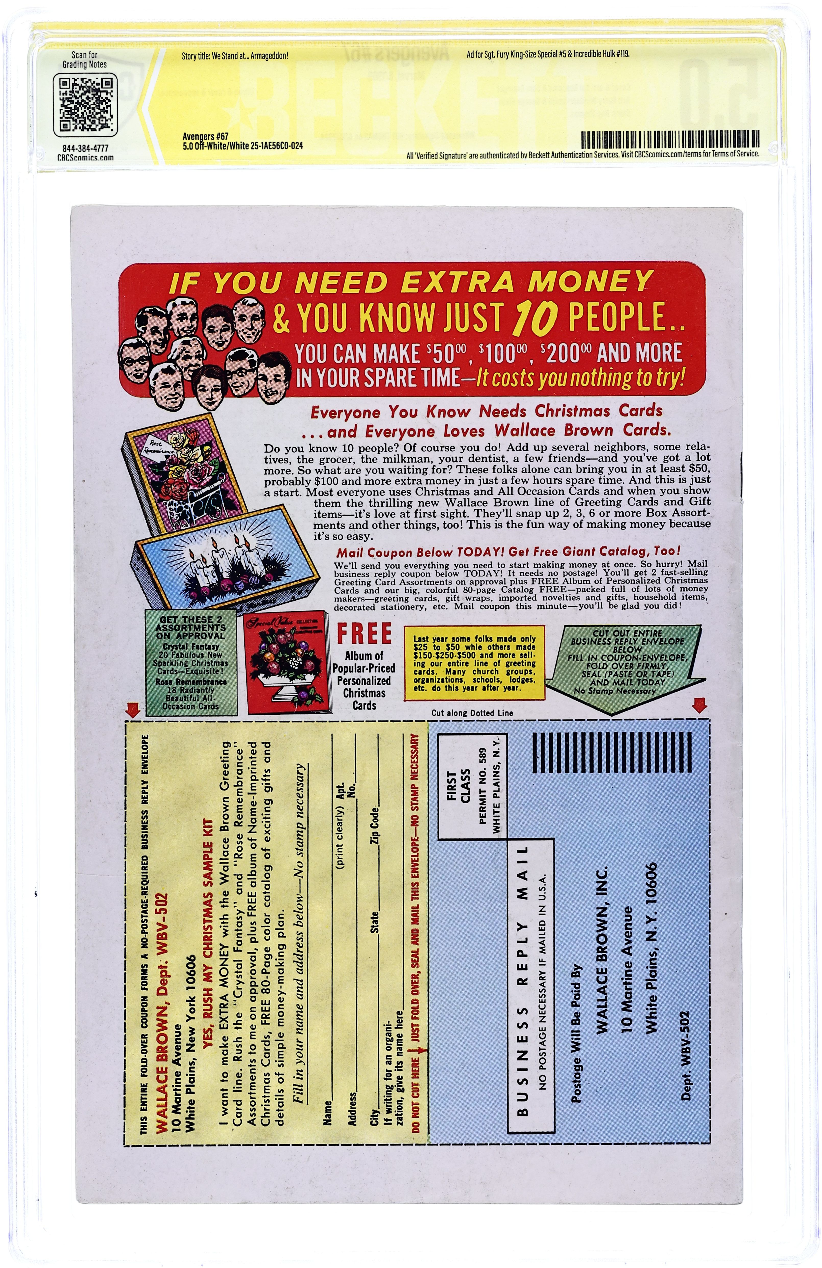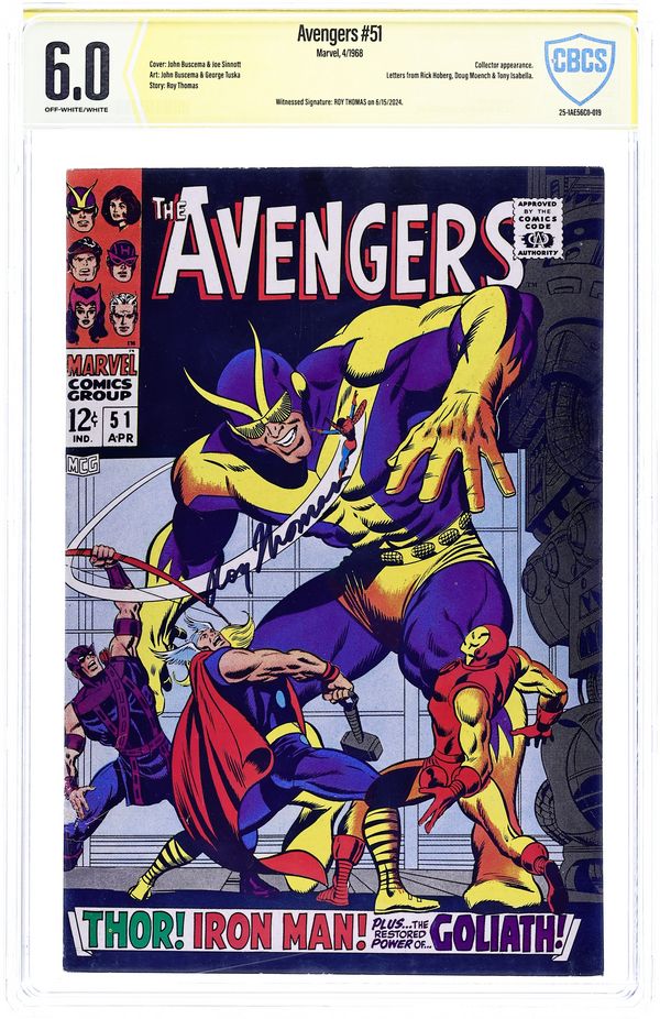 "In the Clutches of the Collector!" Script by Roy Thomas. Pencils by John Buscema. Inks by George Tuska. Cover by John Buscema and Joe Sinnott.With the Avengers' roster down to three, Hank Pym tries desperately to restore his size-changing powers! But his first attempt fails! And before he can try again; the Collector abducts Hank and his two remaining teammates! The trio of avengers is shocked to be onboard the Collector's ship! And further shocked that the thunder god is working with the ancient elder of the universe! With four avengers (including Thor) already in his collection, the Collector sends the Prince of Asgard to add a fifth: the Invincible Iron Man! A weakened Shell-Head valiantly battles Thor, but tono avail! How can the Avengers turn the tables on the Collector? Maybe the Wasp has an idea! Cameo appearances by the Hulk, Captain America, and the Black Panther. Avengers Lineup: Goliath, Hawkeye, Iron Man, Thor, and the Wasp. (Notes: The Collector appears next in Iron Man #26 and will attempt to collect Earth's Mightiest Heroes again in Avengers 119. The letters page includes letters from comics writers Doug Moench and Tony Isabella, respectively. This issue was reprinted in Marvel Triple Action #43.) 36 pages. Cover price $0.12.