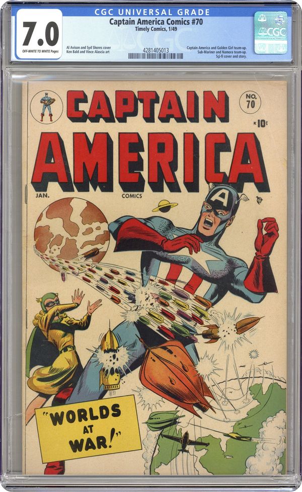 Includes: cover Pencils by Al Avison, Inks by Syd Shores; Worlds At War, Pencils by Ken Bald, Inks by Vince Alascia; Eddie Saves the Dough text story; The Man Who Knew Everything, art by Bald; and Scavengers of the Desert starring Sub-Mariner. 36 pgs. Cover price $0.10.
