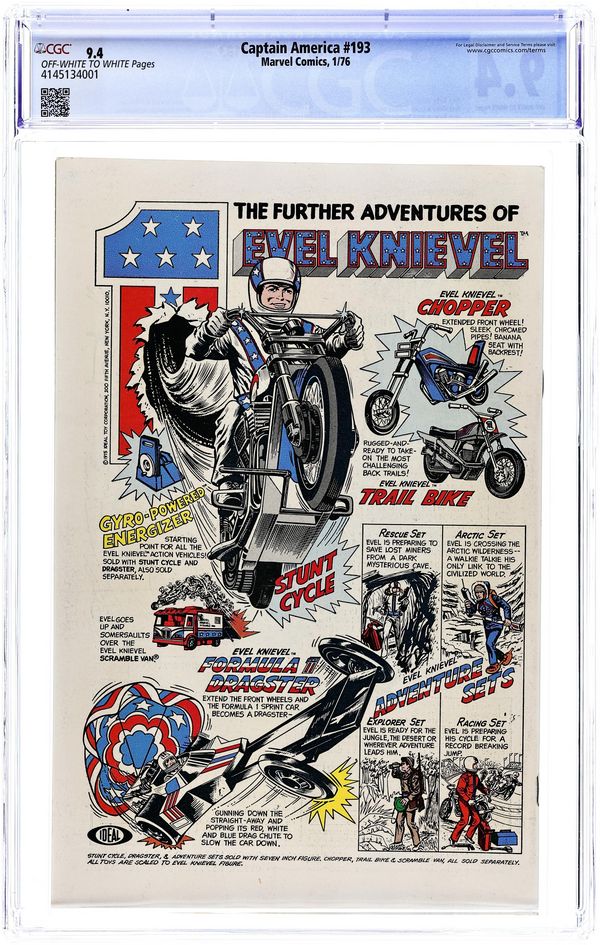Starts Dec 15 Cover pencils by Marie Severin, inks by Joe Sinnott. "Mission: Stamp Out Satan's Angels," script by Stan Lee, pencils by Gene Colan, inks by Dick Ayers; Dismayed by hearing comments from the people that Captain America is washed up, Steve Rogers buys a motorcycle for driving across the country; Entering Coits Neck, he gets arrested by a policeman who thinks hes a member of Satans Angels; The Angels break Steve out of jail; Steve refuses to go with them and then rents a room in town; Later, the Angels terrorize an outdoor music festival by racing their motorcycles through the audience; Cap arrives on his bike to stop the destruction; Gang member Whitey tries to run down Cap with his bike; Cap fends him off with his shield; Red Skull watches this conflict on a view screen. Cameos by the Red Skull, Bucky Barnes, Baron Zemo, Clark Gable, and W.C. Fields. 36 pgs., full color. $0.15. Cover price $0.15.