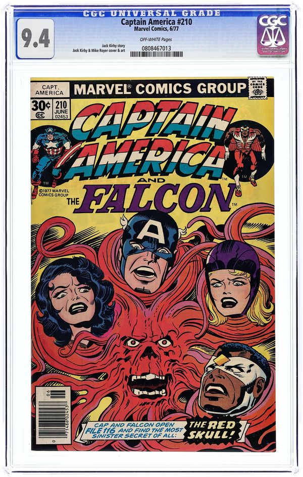 Ends Dec 8 7:47 PM CST Bid History 9 bids Current Bid $50 Your Secret Max Bid If you'd like to bid, please log in or register. Cover pencils by Gene Colan, inks by Joe Sinnott. The dramatic conclusion to the story that began back in issue 115 in "Now Falls the Skull!", script by Stan Lee, pencils by Gene Colan, inks by Joe Sinnott; The Red Skull uses the Cosmic Cube to change bodies back with Captain America; Falcon realizes the man who he has been working with is Captain America; The Skull uses the Cube to toy with Cap and the Falcon during their battle; Elsewhere, MODOK activates his newly-created Catholite Block to disrupt the power of the Cosmic Cube; The Red Skull uses the remaining power of the Cube to disappear. Letter to the editor from writer Alan Brennert. 36 pgs., full color. $0.15. Cover price $0.15.