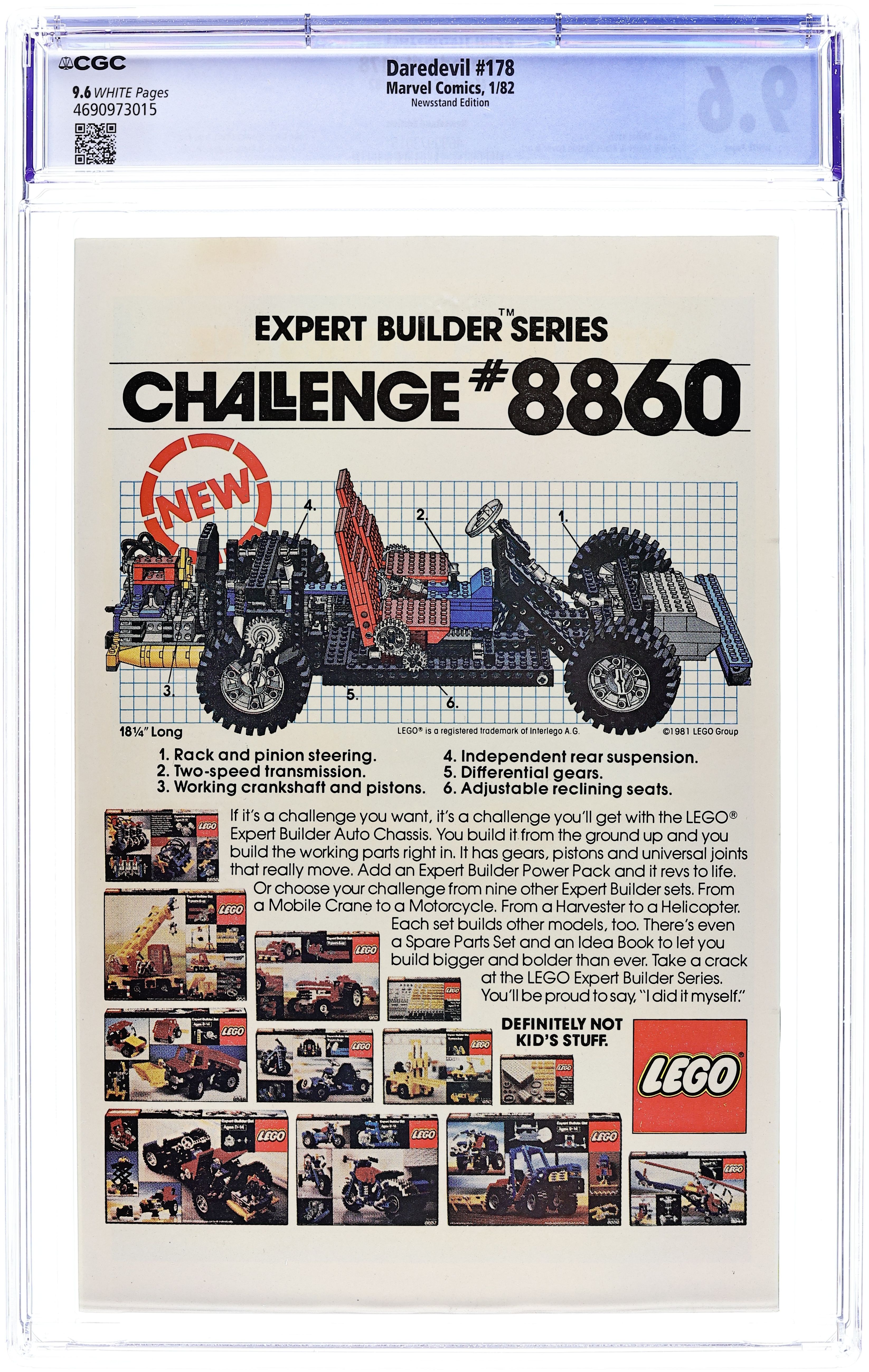 Cover pencils by Frank Miller, inks by Klaus Janson. Turk becomes the new Stilt Man in Stilts, script by Frank Miller, pencils by Frank Miller (layouts) and Klaus Janson (finished art), inks by Klaus Janson; Matt begins gathering criminal evidence to sink Glenn industries; Turk steals the Stilt Man armor and tries to prove himself to the Kingpin (and fails miserably); DD's hyper senses start going wild; Matt pressures Heather into accepting his proposal of marriage; Gladiator appearance. Back cover MegaForce art by William Stout. 36 pgs. Cover price $0.60. Cover price $0.60.