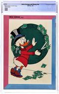 Cover by Carl Barks. Stories and art by Carl Barks, Vic Lockman and Kay Wright. Comics legend Carl Barks creates his masterpiece, featuring the adventures of Donald Duck's Uncle Scrooge, the richest duck in the world. A lemming gets hold of the combination to Scrooge's new safe, and Scrooge must find it amongst the millions of lemmings marching to the sea. This Carl Barks story was adapted into an episode of the beloved 1980s Disney cartoon show "Duck Tales." A genie finds Scrooge's wishes a challenge. Donald and the boys test Uncle Scrooge's willpower with a coin glued to the sidewalk. The Lemming With the Locket; Wishful Excess; Sidewalk of the Mind. 32 pages, Full Color. Cover price $0.40.