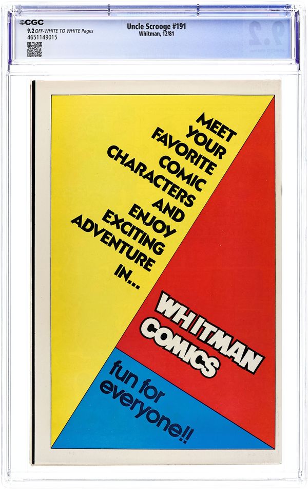 Painted cover art by Carl Barks. The Sign of the Triple Distelfink starring Donald Duck, Huey, Dewey, and Louie, Daisy Duck, Gladstone Gander, Grandma Duck, and Uncle Scrooge, script and art by Don Rosa. The Spider Yarn starring Uncle Scrooge, script by Paul Halas (plot) and Brian Claxton (script), art by Marcal Abella Bresco. A Sticky Story starring Uncle Scrooge, script by Per Hedman and Gary Gabner (US script), pencils by Francisco Rodriguez Peinado. Back To Long Ago starring Uncle Scrooge, script and art by Carl Barks. Daily Strips starring Donald Duck, script by Bob Karp, pencils by Al Taliaferro, inks by Al Taliaferro and Bill Wright. 68 pages, full color. Cover price $6.95.