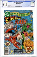 DC Comics Presents: Superman and the Flash - "Rampaging in Scarlet!" Written by Cary Bates. Art by Carmine Infantino and Dave Hunt. Cover by Carmine Infantino and Klaus Janson. Why is Superman trying to arrest the Flash? What could have possibly happened to turn the Man of Steel against the Crimson Comet? The answer may surprise you! 32 pages, FC. Cover price $0.75.