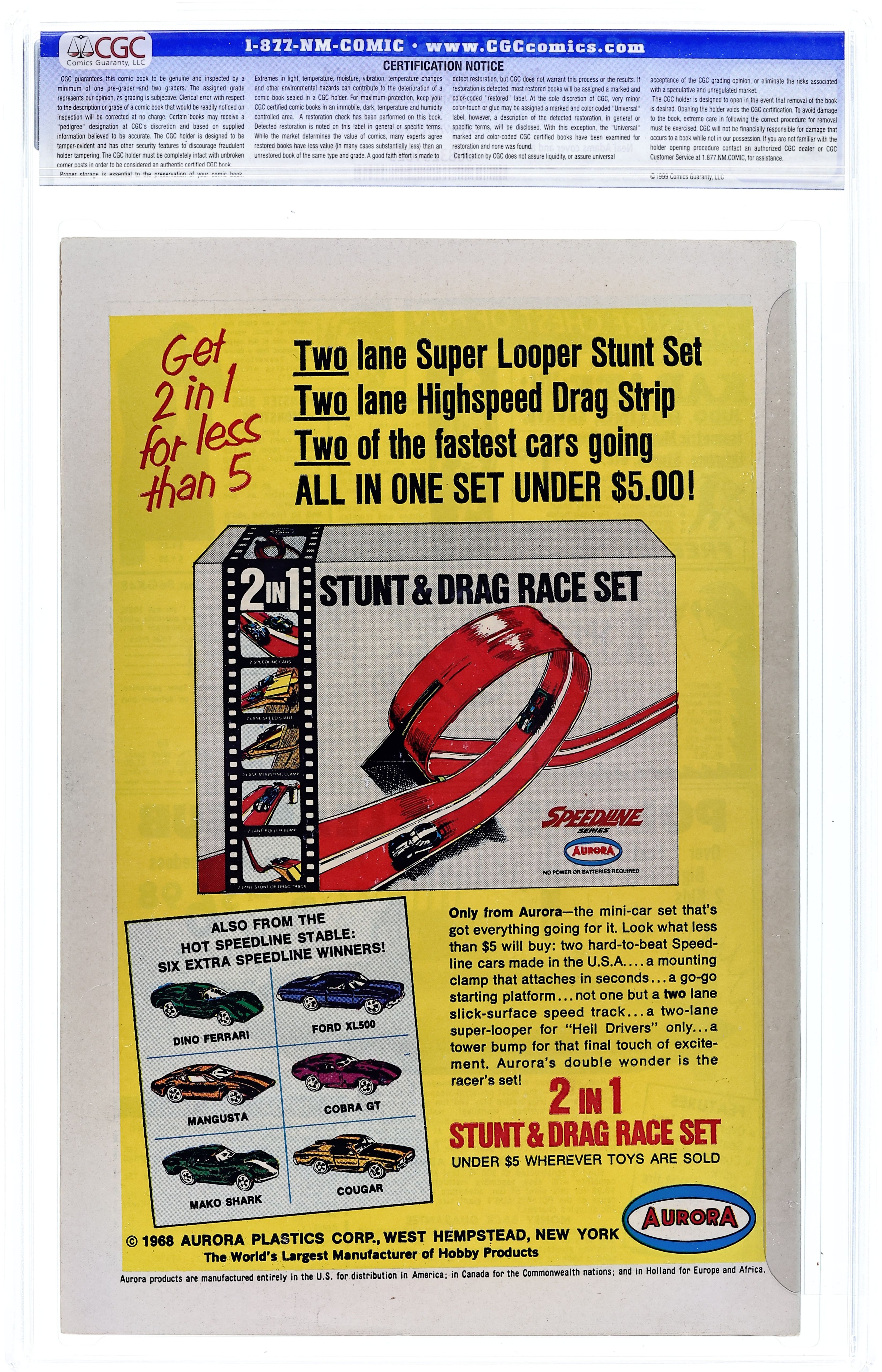 Last 10-cent cover price. Cover pencils by Carmine Infantino, inks by Joe Giella. Space-Boomerang Trap!, script by John Broome, pencils by Carmine Infantino, inks by Joe Giella; Captain Boomerang is paroled from prison and invents a time-traveling boomerang; Flash and Elongated Man stop Boomerang; all three join together to battle aliens. Vengeance Via Television!, script by John Broome, pencils by Carmine Infantino, inks by Joe Giella; When James Lawton is released from jail he takes revenge on those who put him in jail by using his new psi-helmet. Sea Devils #1 ad. Letter from fanzine writers Bernie Bubnis and Robert Jennings. Letter from Infantino. Amazing Speeds fact page. 36 Pages, Full Color. Cover price $0.10.