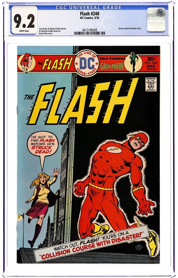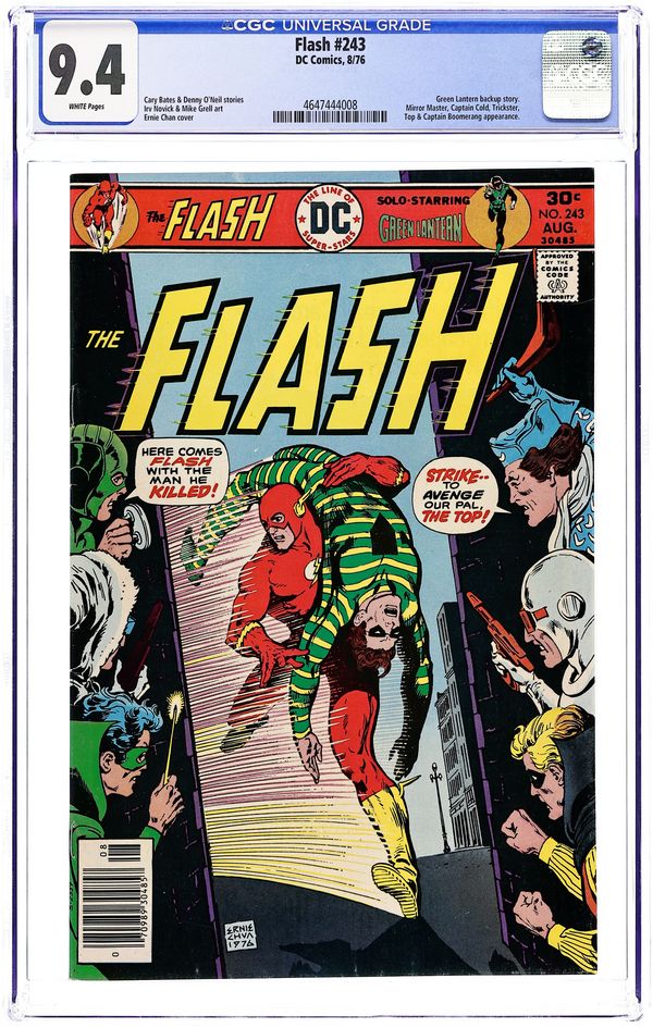First 30-cent issue. Cover art by Ernie Chan [as Ernie Chua]. Collision Course With Disaster, script by Cary Bates, pencils by Irv Novick, inks by Tex Blaisdell; Stacy Conwell, the college girl that lives with Barry and Iris Allen, has a premonition of Flash's death. The Floods Will Come!, script by Denny O'Neil, pencils by Mike Grell, inks by Tex Blaisdell; Green Lantern and Itty battle a space creature. Ad for Superman vs. The Amazing Spider-Man. Super-Hero Stick-Ons ad. Juvenile Justice public service ad with Superman. Ad for Super DC Calendar and other DC merchandise. Batman and Superman life-size hang-ups ad. 36 Pages, Full Color. Cover price $0.30.