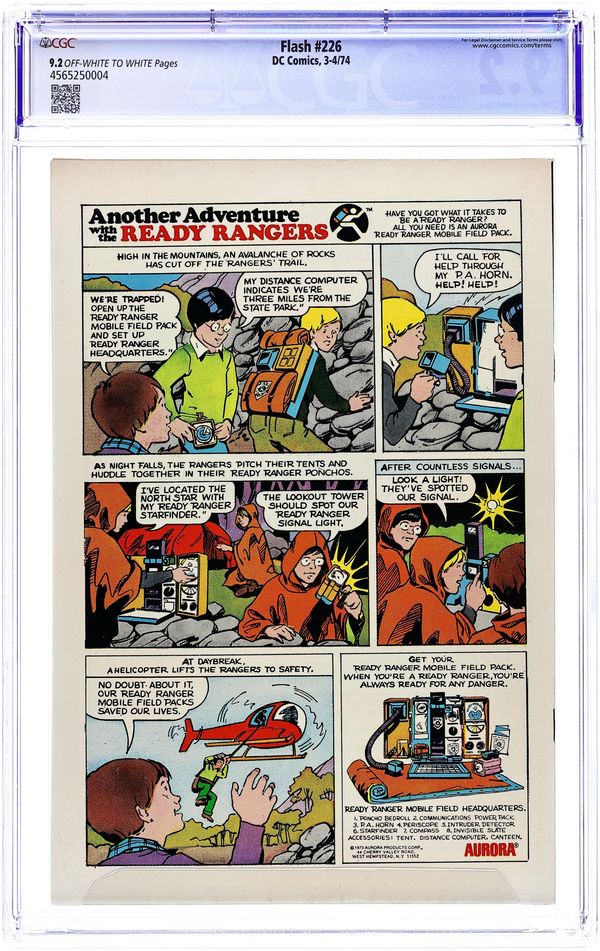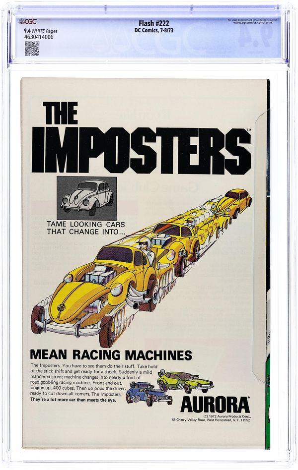 Cover pencils by Carmine Infantino, inks by Joe Giella. Who Stole the Flash's Super Speed, script by Gardner Fox, pencils by Carmine Infantino, inks by Joe Giella; someone is impersonating Flash; a criminal from the dimension of Korakar Lok steels speed and intends to permanently steal Flashs speed. The Day Flash Aged 100 Years, script by Gardner Fox, pencils by Carmine Infantino, inks by Joe Giella; The Top uses an aging serum on Flash. Trik Trak toy ad. Caps Hobby Center strip by Henry Boltinoff. Rocky and Bullwinkle star in a one-page Cheerios ad. Tyco ad. 80 pg. Giant Batman ad. Brave and the Bold 63 ad with Supergirl and Wonder Woman. Batman subscription ad. G.I. Joe club ad. 36 Pages, Full Color. Cover price $0.12.