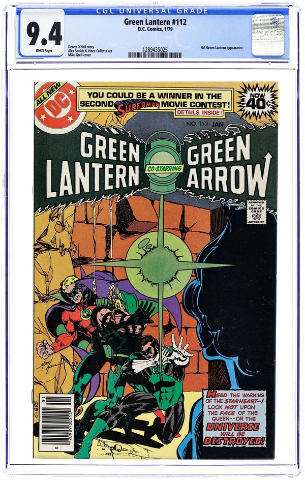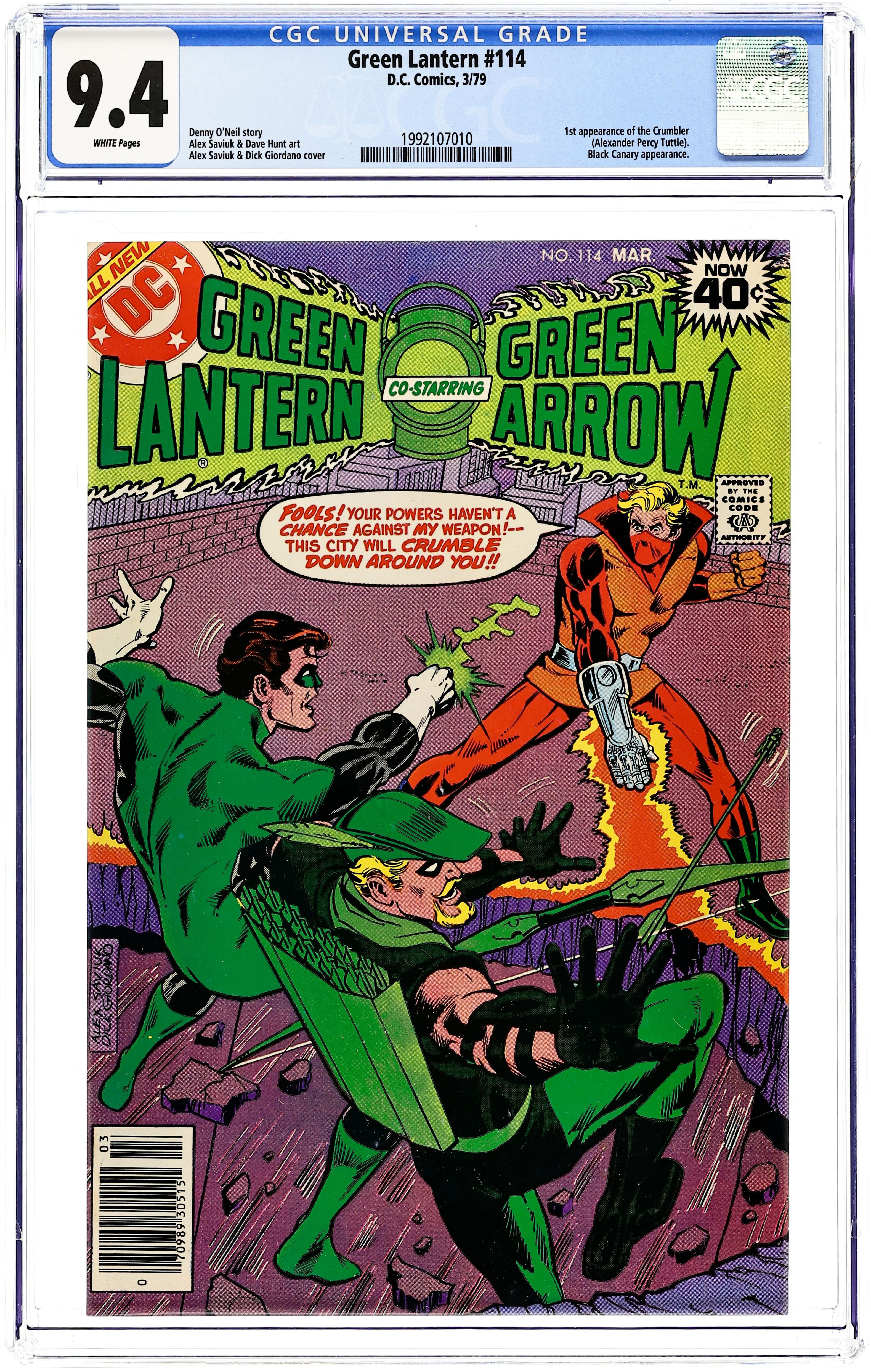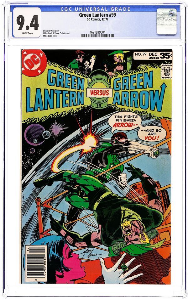 "We are on the Edge of the Ultimate Ending." Guest-starring Black Canary. Green Lantern, Katma Tui, and Green Arrow get to the bottom of the mystery of the Mocker. Black Canary makes a guest appearance. Script by Denny O'Neil, pencils by Mike Grell, inks by Vince Colletta. Cover by Grell. Cover price $0.35.