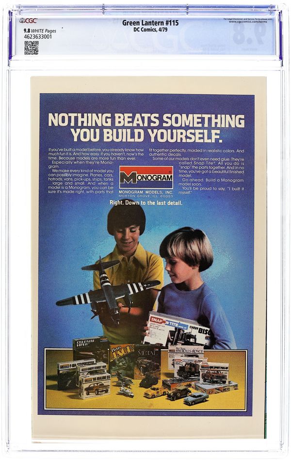 "Sabotage Sinister." Crooks Ferris Aircraft seats and steals one of their planes. Naturally, Green Lantern looks into it. Script by Paul Kupperberg, art by Joe Staton. Includes Tales of the Green Lantern Corps story called "The Trial of Arkkis Chummuck: Verdict." Script by Bob Toomey, pencils by Alex Saviuk, inks by Vince Colletta. Cover by George Pérez and Dick Giordano. Cover price $0.50.