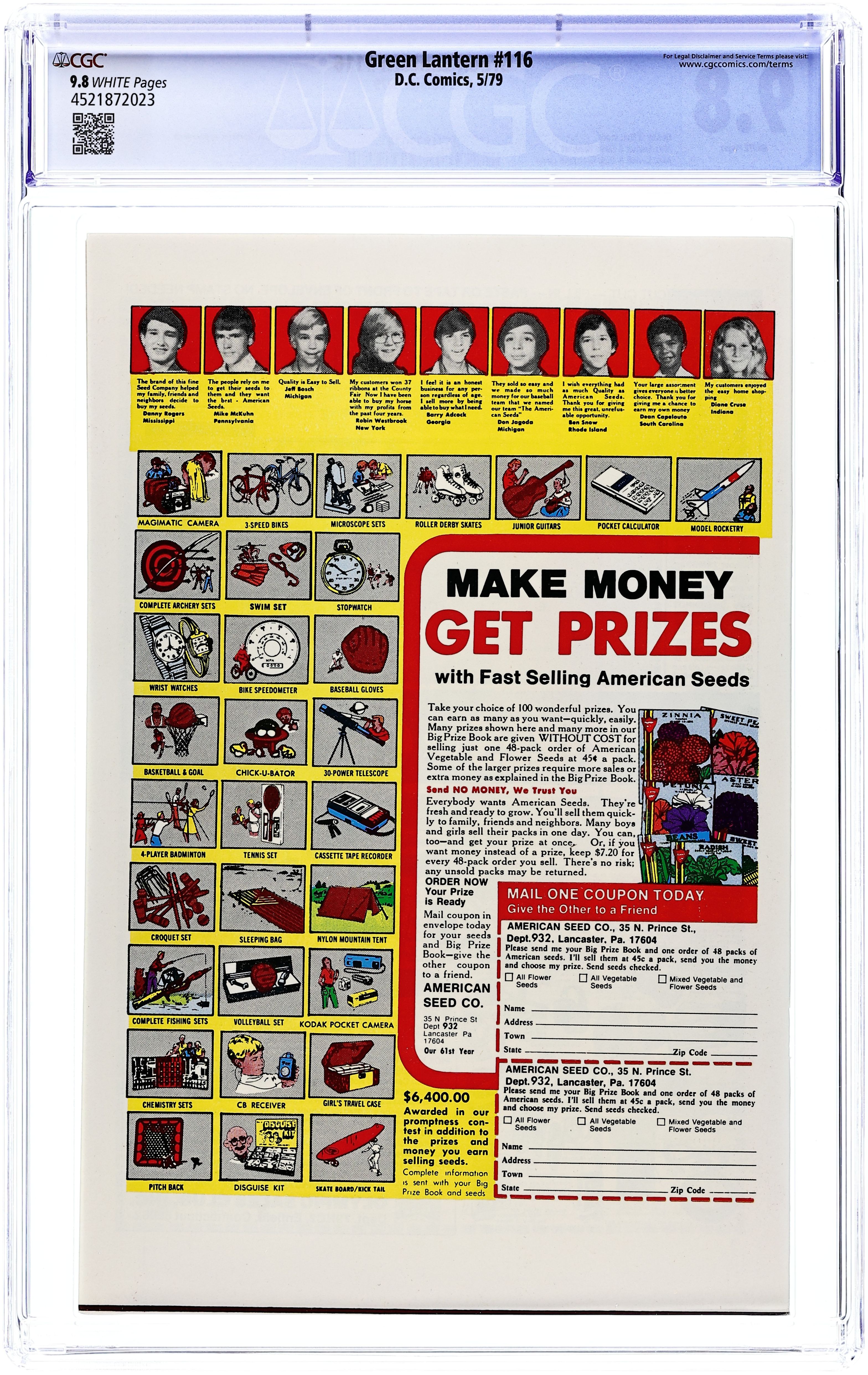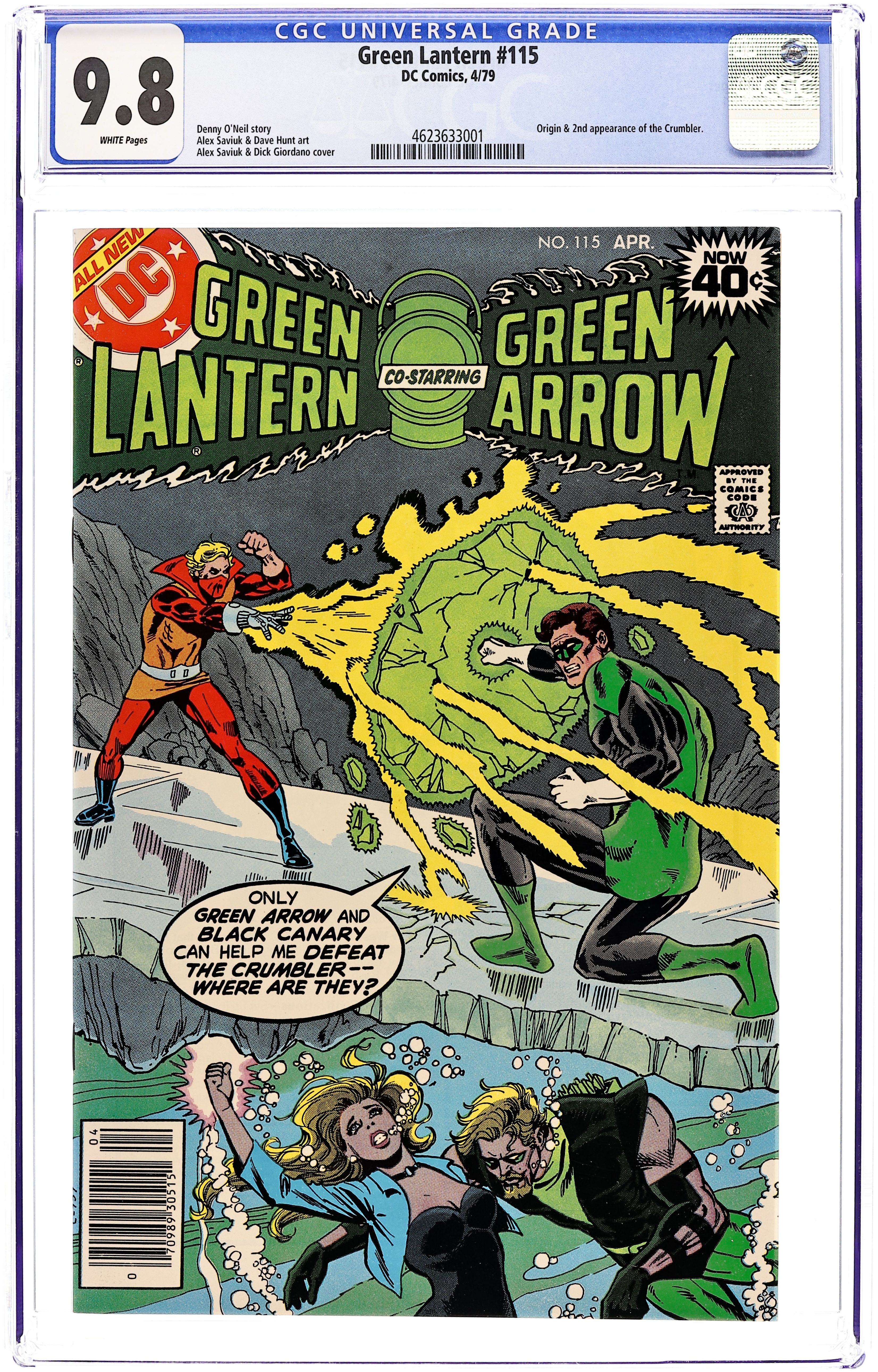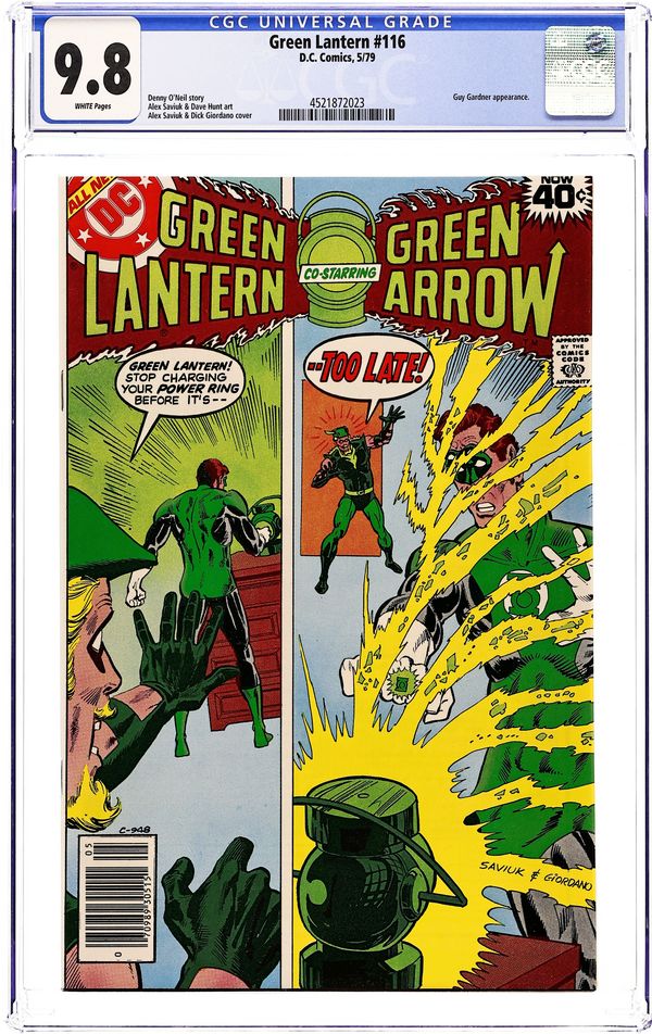 "The Green that Got Away." Green Lantern tells Carol and Pieface about the time Hector Hammond tried to mentally steal his power ring energy. Script by Denny O'Neil, pencils by Joe Staton and Dave Cockrum, inks by Dick Giordano and Bob Smith. Green Arrow stars in a one-page Hostess ad, "An Arrow in Time." Cover by Dick Giordano. Cover price $0.40.