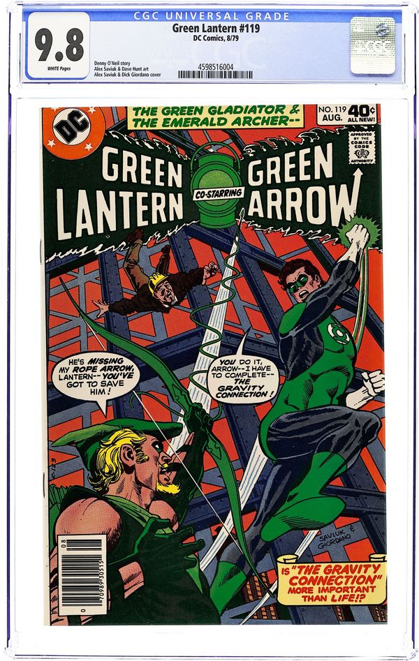 "Starheart Connection." Part 2 of 2. Guest-starring GA Green Lantern (Alan Scott). Script by Denny O'Neil, pencils by Alex Saviuk, inks by Vince Colletta. Green Arrow, Green Lantern, and Green Lantern of Earth Two track the mystical Starheart to a planet where a thief has stolen the item to cure his dying queen. Cover by Mike Grell. Cover price $0.40.
