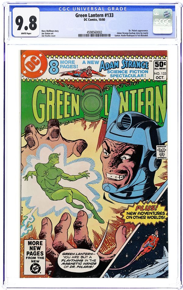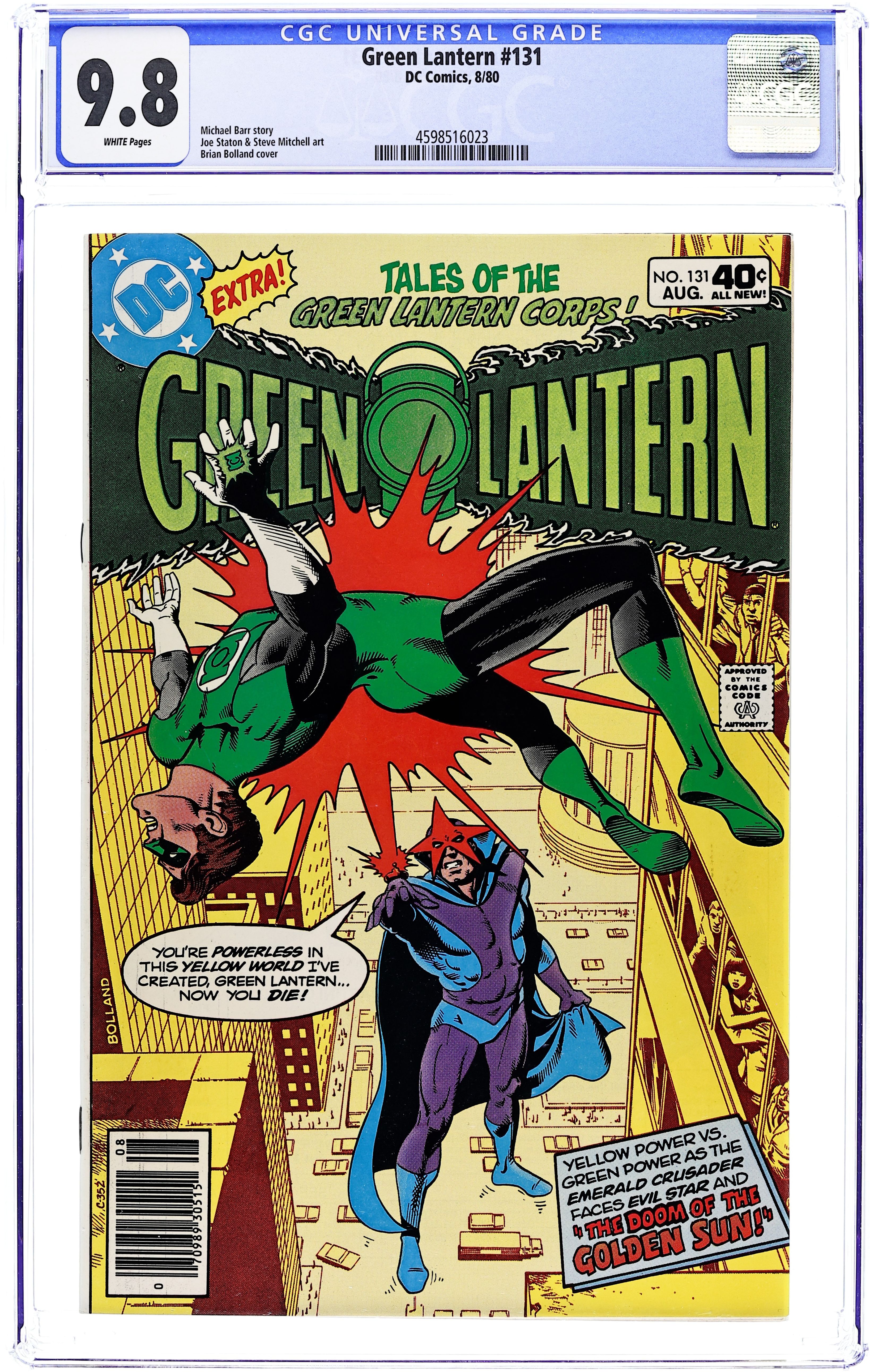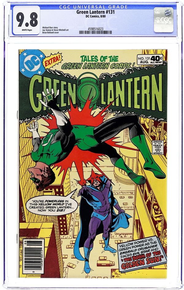 "The Doom of the Golden Sun." Evil Star, bent on making Earth's sun go nova, imprisons Green Lantern. Script by Mike W. Barr, pencils by Joe Staton, inks by Steve Mitchell. Includes Tales of the Green Lantern Corps story called "The Trial of Arkkis Chummuck: Evidence." Script by Bob Toomey, pencils by Alex Saviuk, inks by Vince Colletta. Cover by Brian Bolland. Cover price $0.40.