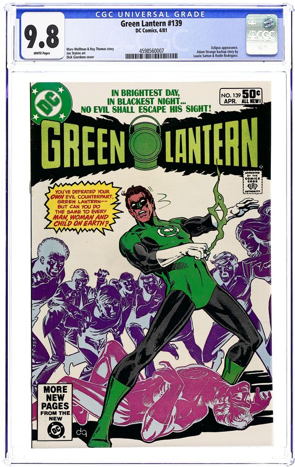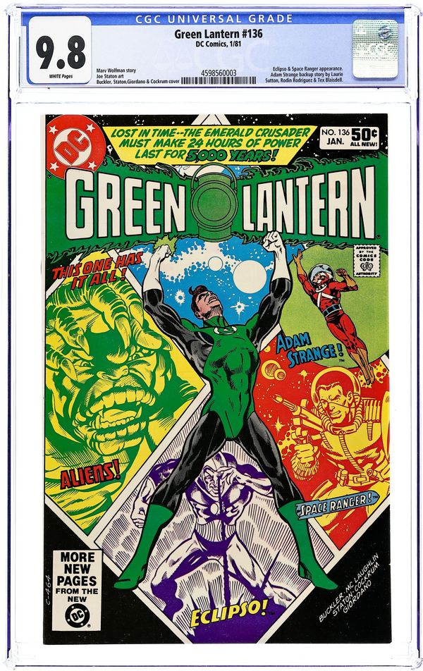 Direct Edition. "The Space Ranger Strikes Back." Part 1 of 4. Eclipso attacks Green Lantern and Thomas Kalmaku, but GL gets transported to the time of the Space Ranger. 1st app. Citadel. Script by Marv Wolfman, art by Joe Staton. Includes Adam Strange back-up story. Cover by Rich Buckler, Frank McLaughlin, Joe Staton, Dave Cockrum, and Dick Giordano. Cover price $0.50.
