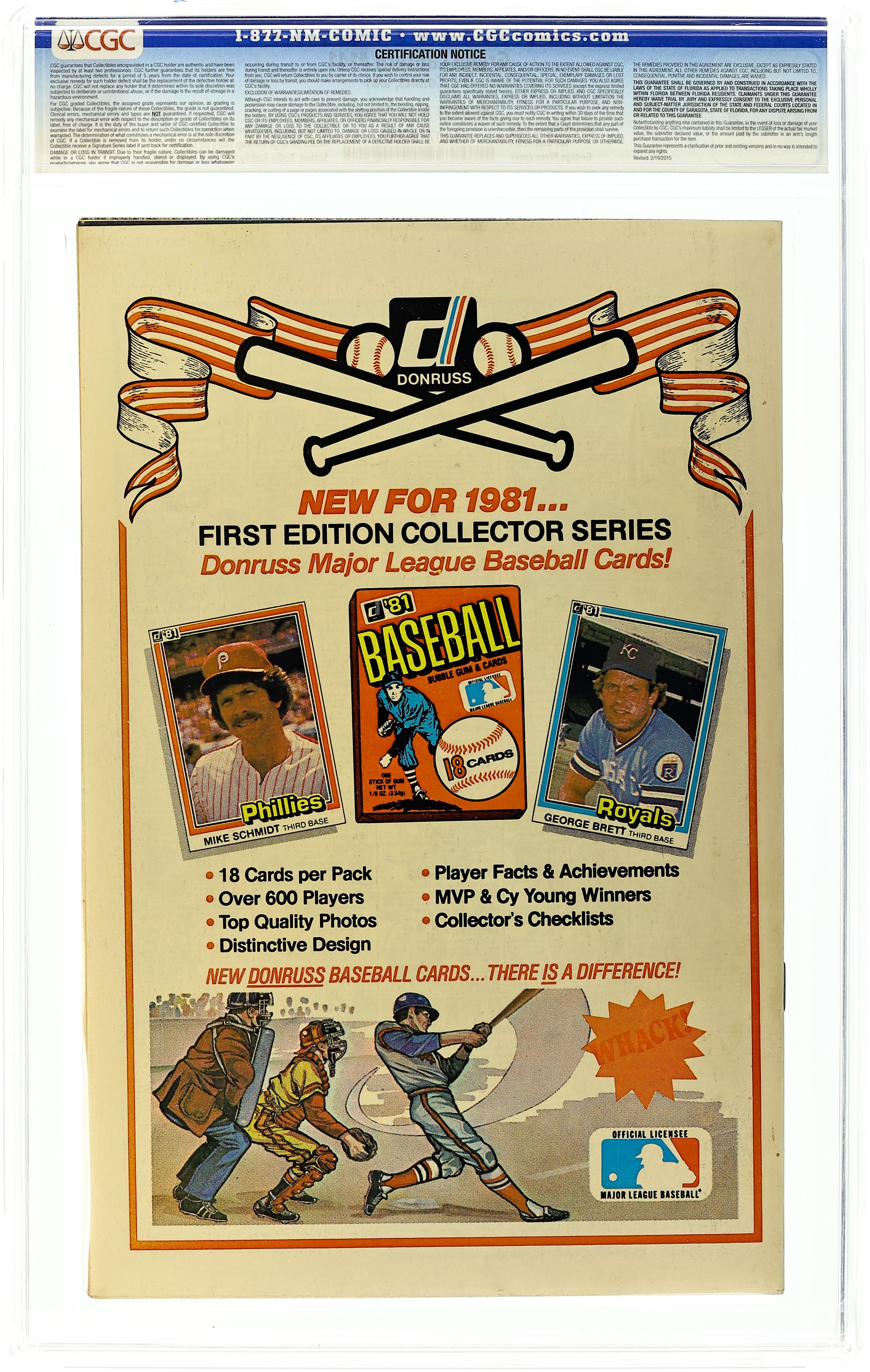 Direct Edition. "Call Him Auron! God of Light! God of Death!" Green Lantern and the Omega Men battle the Citadel. Auron has to decide whether to spare the Gordanians or kill them. Script by Marv Wolfman, art by Joe Staton. Cover by George Pérez. Cover price $0.50.