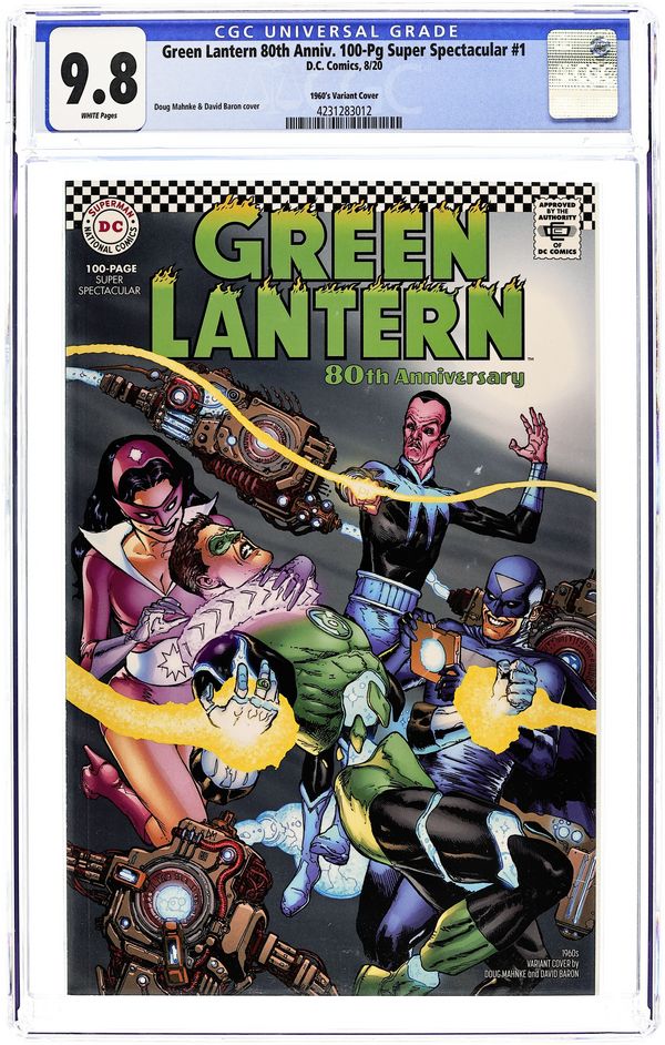 Cover by Doug Mahnke. Written by James Tynion IV, Geoff Johns, Cullen Bunn, Dennis O'Neil, Ron Marz, Peter J. Tomasi, Charlotte (Fullerton) McDuffie, ChrisCross, Robert Venditti, Mariko Tamaki and Sina Grace. Art by Gary Frank, Ivan Reis, Doug Mahnke, Mike Grell, Darryl Banks, Fernando Pasarin, ChrisCross, Rafa Sandoval, Mirka Andolfo, Ramon Villalobos, Oclair Albert, Wade von Grawbadger and Jordi Tarragona. In brightest day, in blackest night, no evil could ever escape their sight! The Green Lanterns are celebrating 80 years of keeping the DC Universe safe. Join us to see tales of all of the universe's most legendary Green Lanterns: Alan Scott, Hal Jordan, John Stewart, Guy Gardner, Kyle Rayner, Jessica Cruz, Simon Baz, and appearances from other cosmic favorites! A legendary lineup of creators including Geoff Johns, Peter J. Tomasi, Gary Frank, Ivan Reis, and others will be keeping the galaxy glowing bright! Featuring: Alan Scott in "Dark Things Cannot Stand the Light" by James Tynion IV and Gary Frank; Hal Jordan in "Last Will" by Geoff Johns, Ivan Reis and Oclair Albert; Sinestro in "The Meaning of Fear" by Cullen Bunn and Doug Mahnke; Green Lantern and Green Arrow in "Time Alone" by Dennis O'Neil and Mike Grell; Kyle Rayner in "Legacy" by Ron Marz and Darryl Banks; Guy Gardner and Kilowog in "Heart of the Corps" by Peter J. Tomasi, Fernando Pasarin and Wade von Grawbadger; John Stewart in "Reverse the Polarity" by Charlotte (Fullerton) McDuffie (a.k.a. Dwayne McDuffie's "McSpouse"), ChrisCross and Jordi Tarragona; Hal Jordan, John Stewart, Guy Gardner and Kyle Rayner in "Four" by Robert Venditti, Rafa Sandoval and Jordi Tarragona; Jessica Cruz in "The Voice" by Mariko Tamaki and Mirka Andolfo; and Simon Baz in "Homegrown Hero" by Sina Grace and Ramon Villalobos. Plus pin-ups: Jo Mullein from Far Sector by Jamal Campbell; Hal Jordan by Bruce Timm; Hal Jordan by Rafael Grampá; Jessica Cruz by Joëlle Jones; Keli Quintela/Teen Lantern from Young Justice by David Lafuente; Tai Pham from Green Lantern: Legacy by Andie Tong; Kyle Rayner by Sarah Stone; and Guy Gardner by Joe Staton. PRESTIGE FORMAT. 96 pages, full color. Rated T+ Cover price $9.99.