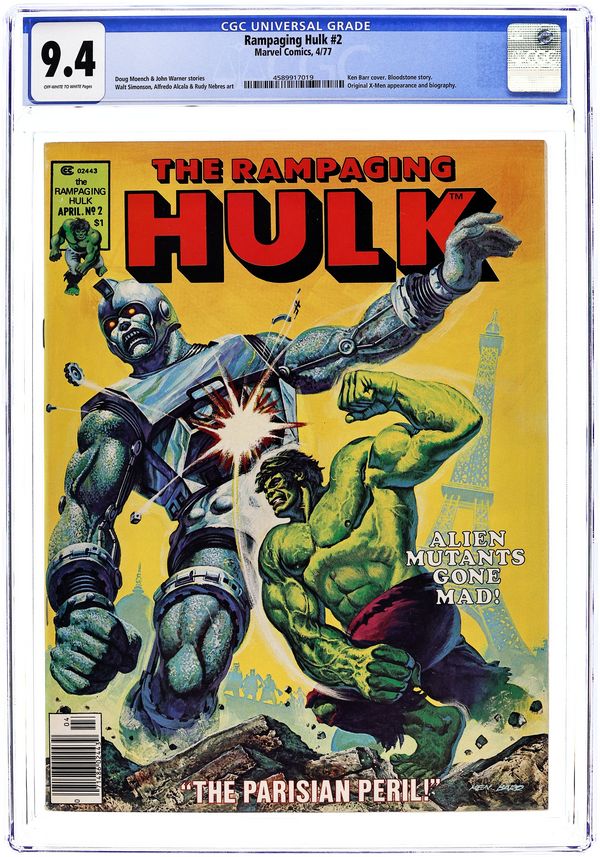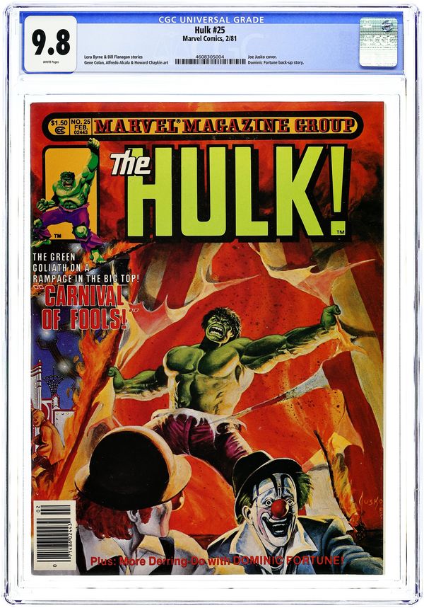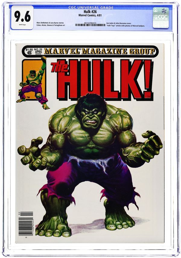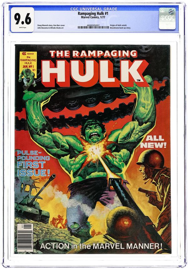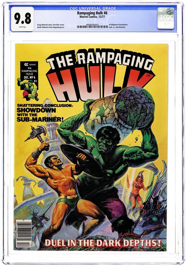 Hulk vs. Sub-Mariner. Includes: cover art by Ken Barr; Great Moments in Hulk History article by Doug Moench, art by Al Milgrom; The Rampaging Hulk 1-page reprint, script by Doug Moench, art by Jack Kirby; And All the Sea, with Monsters!, Script by Doug Moench, Pencils by Keith Pollard, Inks by Tony DeZuniga; and Conspiracy Ascendant!, Script by John Warner, Pencils by Allen Kupperberg, and Inks by Sonny Trinidad. 68 pgs. Cover price $1.00.