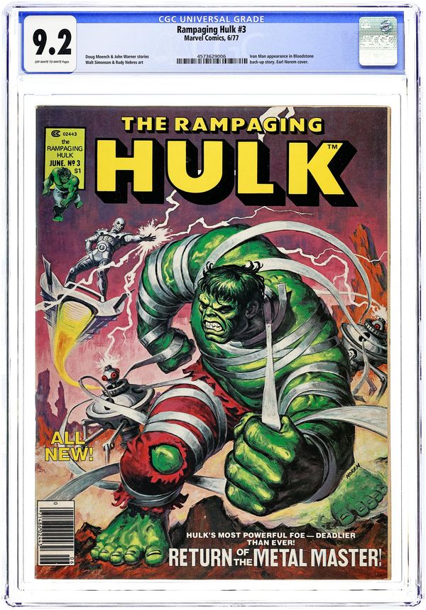 Includes: cover art by Earl Norem; Great Moments in Hulk History, Script by Doug Moench, Pencils by Validar Rann W.; The Rampaging Hulk: A Retrospective! Article by David Kraft, art by Marie Severin; To Avenge the Earth, Script by Doug Moench, Pencils by Sal Buscema, Inks by Rudy Mesina; Shanna the She-Devil, Script by David Kraft, Pencils by Tony DeZuniga; and The Wrath of Raga-Shah! Shanna the She-Devil story by Steve Gerber, art by Tony DeZuniga. 68 pgs. Cover price $1.00.
