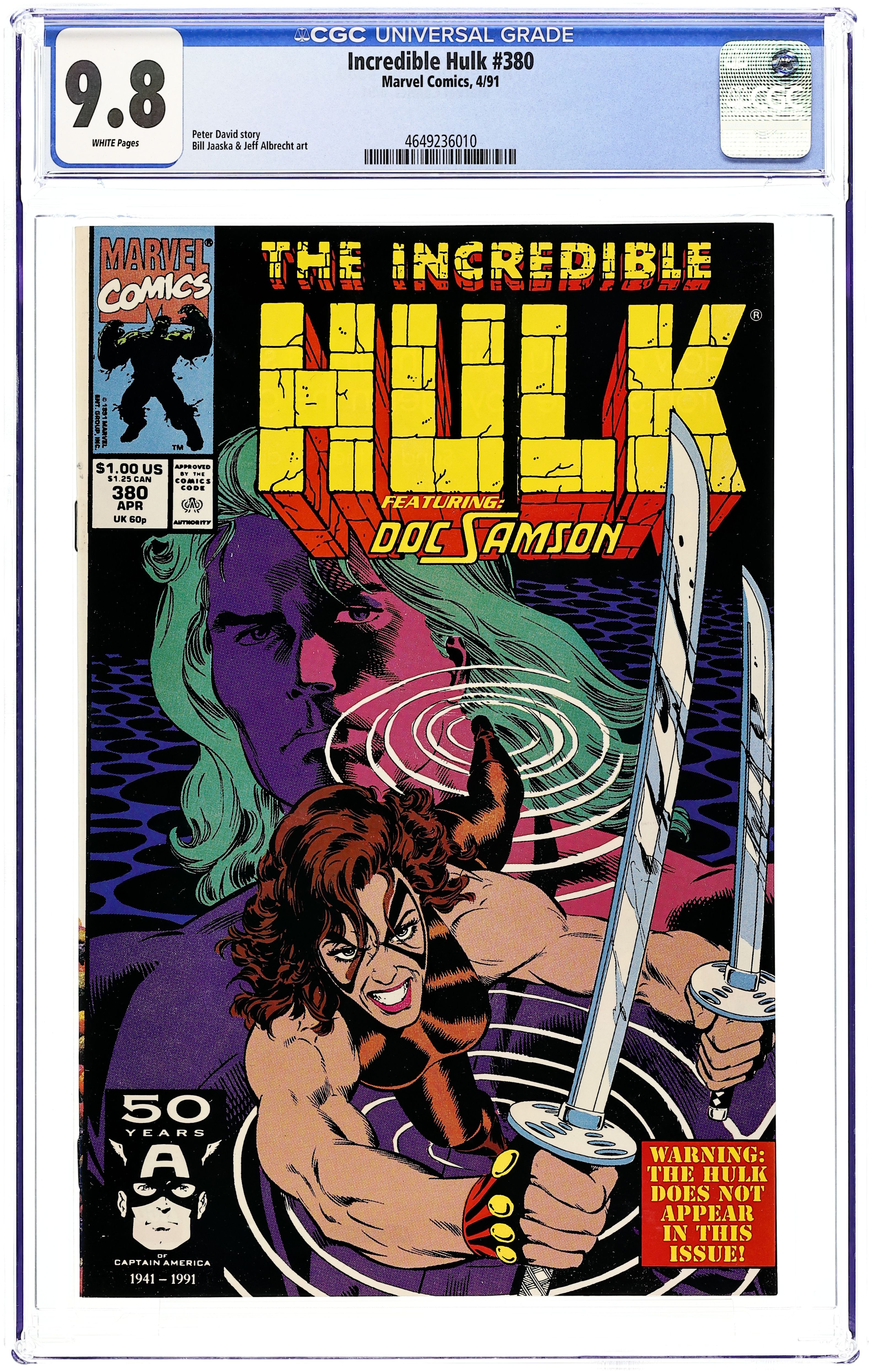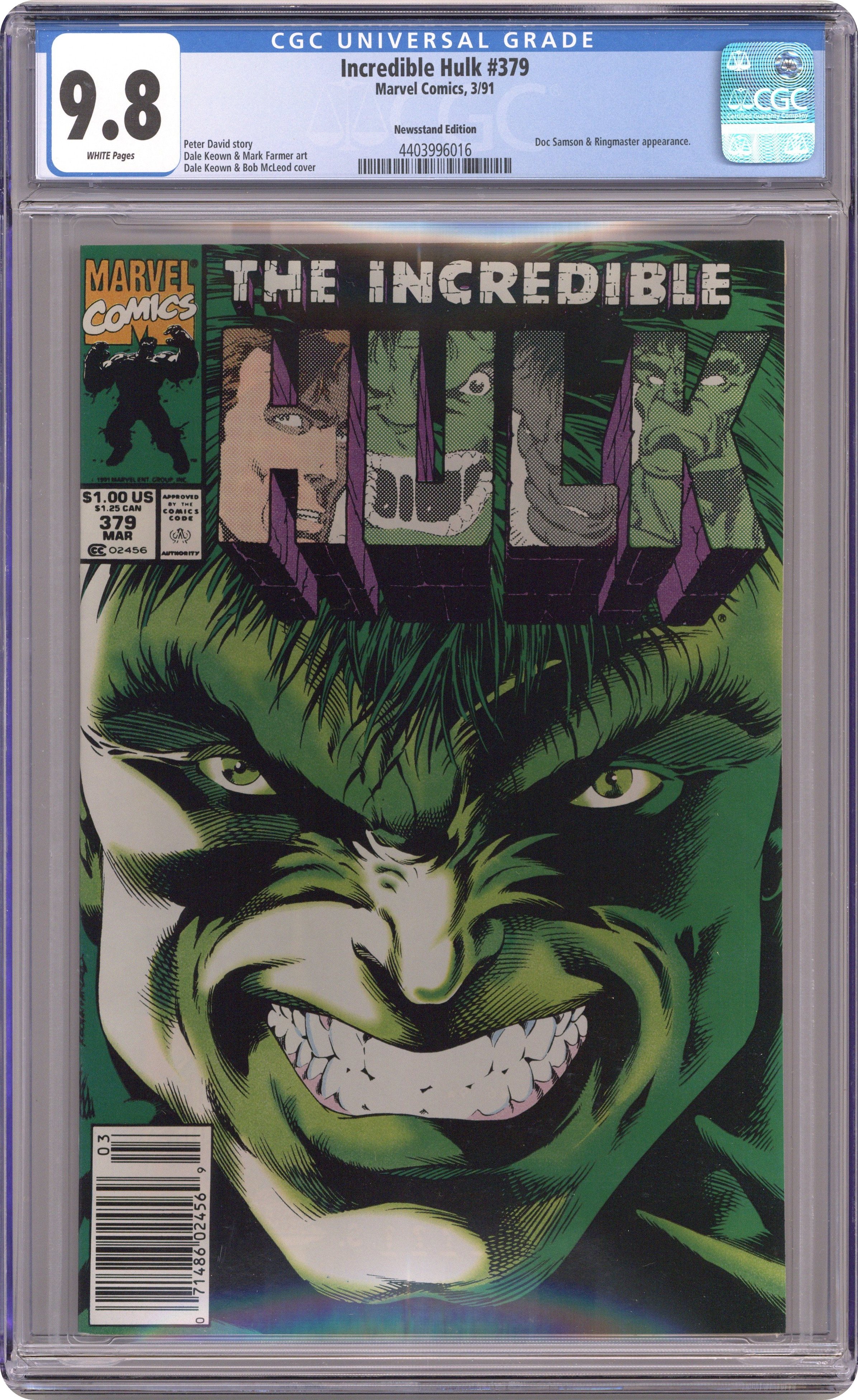 Tags: Marvel Legacy Numbering: Hulk (part 377), HulkIncredible Hulk (1962 Marvel 1st Series) 377A.D CGC 9.4 JSA David 1st Printing
