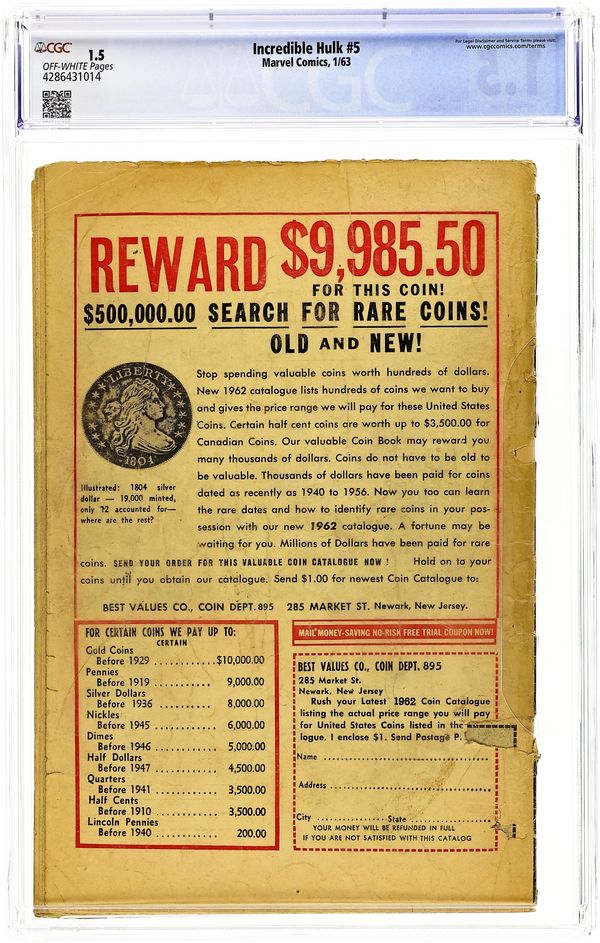 Tags: Marvel Legacy Numbering: Hulk (part 004A), HulkIncredible Hulk (1962 Marvel 1st Series) 4 CGC 5.0