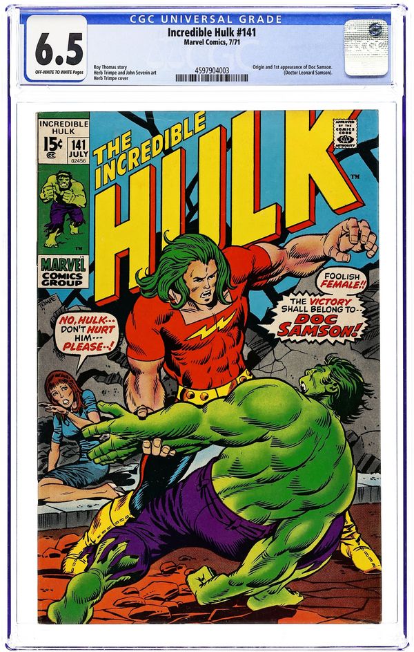 Cover art by Herb Trimpe. His Name Is... Samson!, script by Roy Thomas, pencils by Herb Trimpe, inks by John Severin; Ross enlists the aid of Dr. Samson in siphoning off the Hulk's power to revert Betty from her crystal state and to rid Bruce of the Hulk forever; The experiment is a success, and Leonard uses more of the Hulk's energy to turn himself into a super hero; Watching Doc Samson trying to win Betty's affections, Bruce gets jealous and turns himself into the Hulk once more. House ad for Iron Man #39. 36 pgs. $0.15. Cover price $0.15.