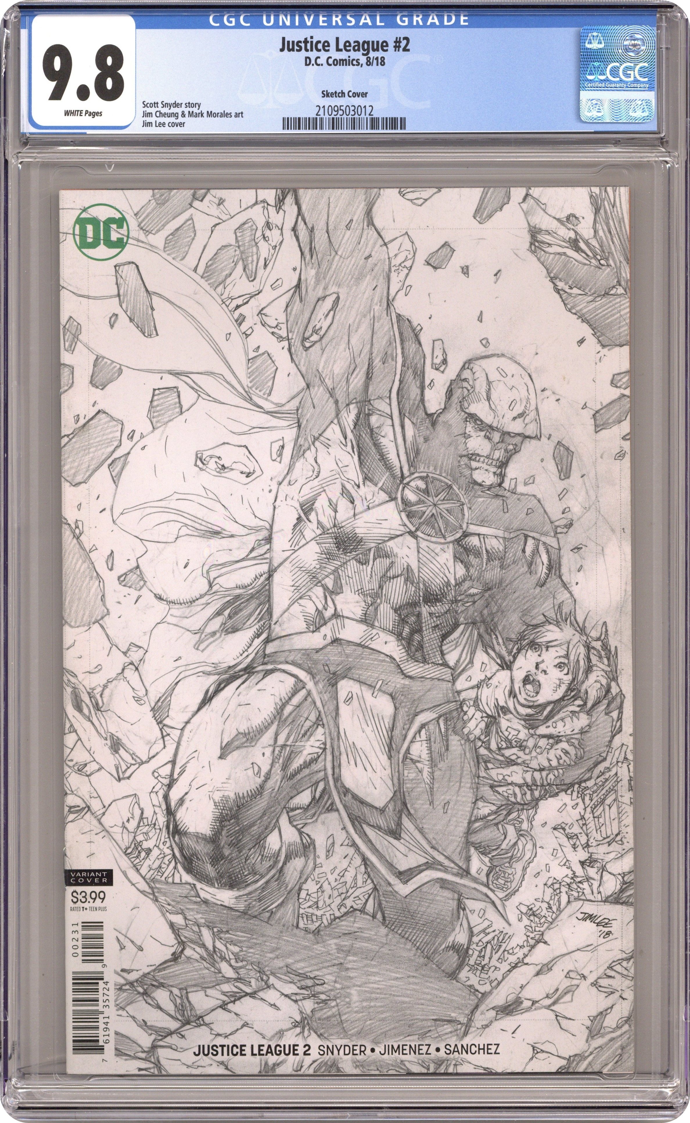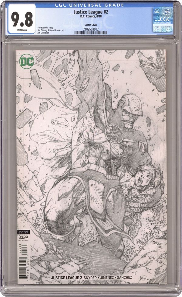 Blank Sketch Cover. Written by Scott Snyder. Art by Jim Cheung and Mark Morales. 'THE TOTALITY' part one! A brand-new era begins here! Comics legends Scott Snyder and Jim Cheung launch the Justice League into a cosmos-shaking mystery that will draw out their most terrible foes…in ways our heroes couldn't possibly imagine! In this debut issue, Martian Manhunter struggles to protect the team from an incoming threat that will shatter the world as they know it, while a familiar face strikes out on a dark path… 32 pages, full color. Rated T+ Cover price $3.99.
