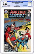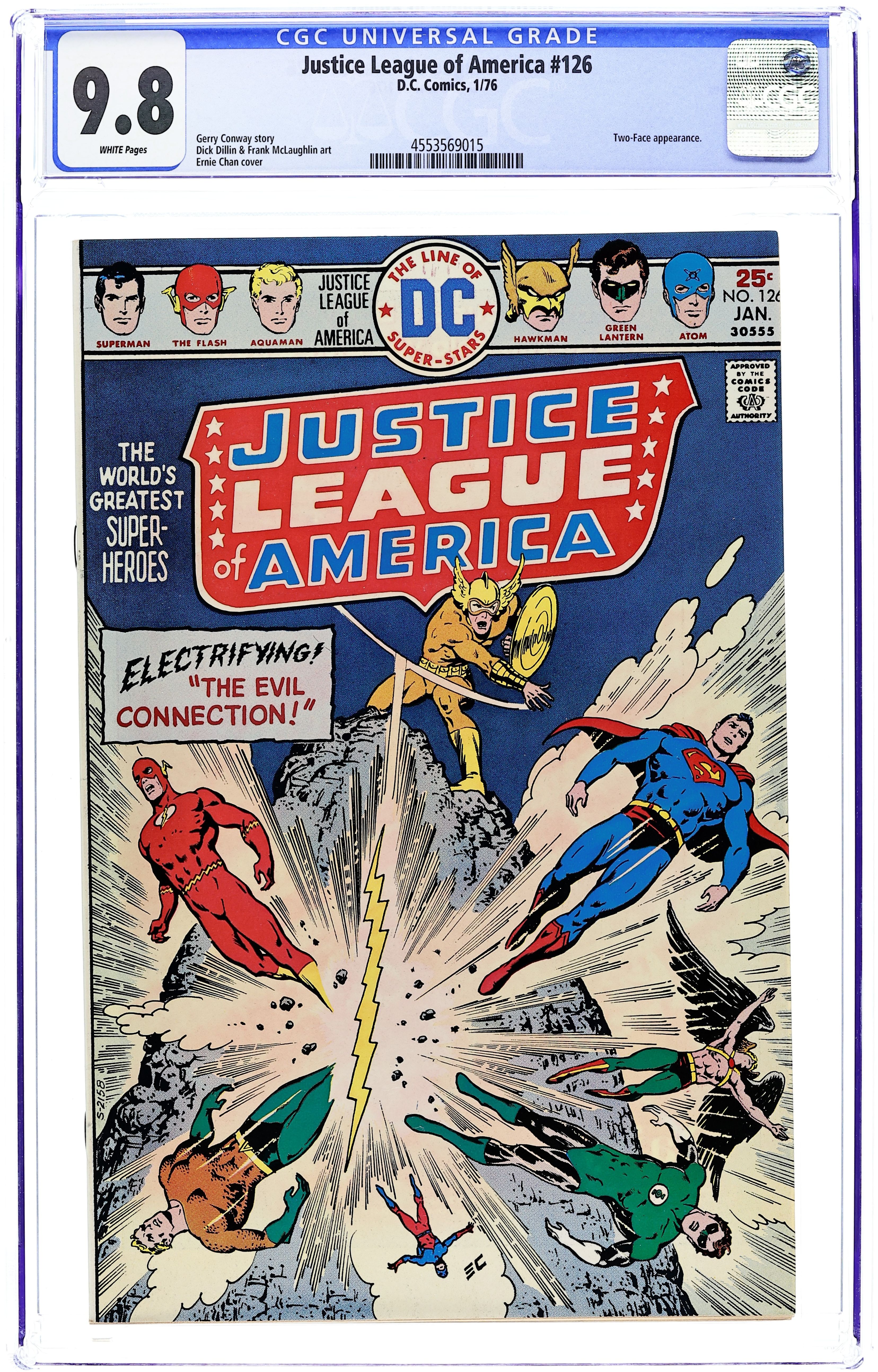 Newsstand Edition. "The Devil's Bargain" is written by Gerry Conway, with art by Rich Buckler and Romeo Tanghal. Characters: Green Arrow [Earth-1]; Flash [Barry Allen]; Black Canary; Red Tornado; Green Lantern [Hal Jordan]; Superman [Earth-1]; Batman [Earth-1]; Atom [Ray Palmer]; Elongated Man; Wonder Woman [Earth-1]; Phantom Stranger (all as the Justice League of America/JLA); The Treasurers (villains); George Arthur Stuart; Karvas-Kun (villain); War-Kohns (villains). Cover by Rich Buckler and Dick Giordano. Cover price $0.60.