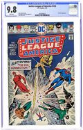 2nd appearance new Green Arrow costume (see Brave and the Bold 85 for the first). Cover pencils by Carmine Infantino, inks by Murphy Anderson. In Each Man There Is a Demon, script by Denny O'Neil, pencils by Dick Dillin, inks by Joe Giella; Black Canary joins the JLA after traveling to Earth 1 from Earth 2; The JLA must battle evil versions of themselves, and Black Canary discovers she's gained the power of a sonic scream as a result of crossing over to Earth-1. Letters to the editor from comics writers Alan Brennert and Martin Pasko. 36 pgs. $0.15. Cover price $0.15.