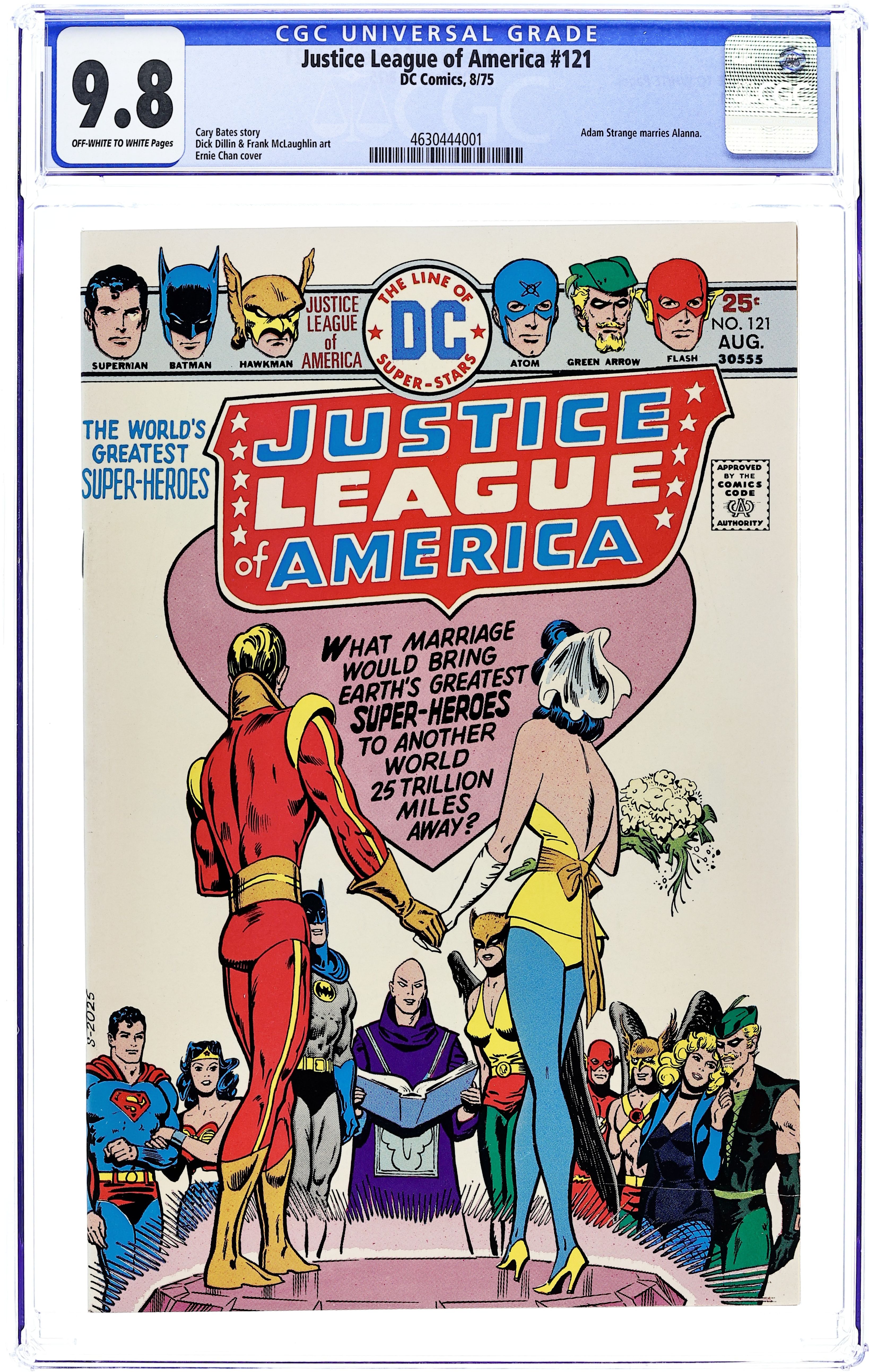 Cover art by Ernie Chan. The Hero Who Jinxed the Justice League!, script by Cary Bates, pencils by Dick Dillin, inks by Frank McLaughlin; Adam Strange marries his long-time sweetheart, Alanna; Kanjar Ro guest-stars. 32 pgs. $0.25. Cover price $0.25.