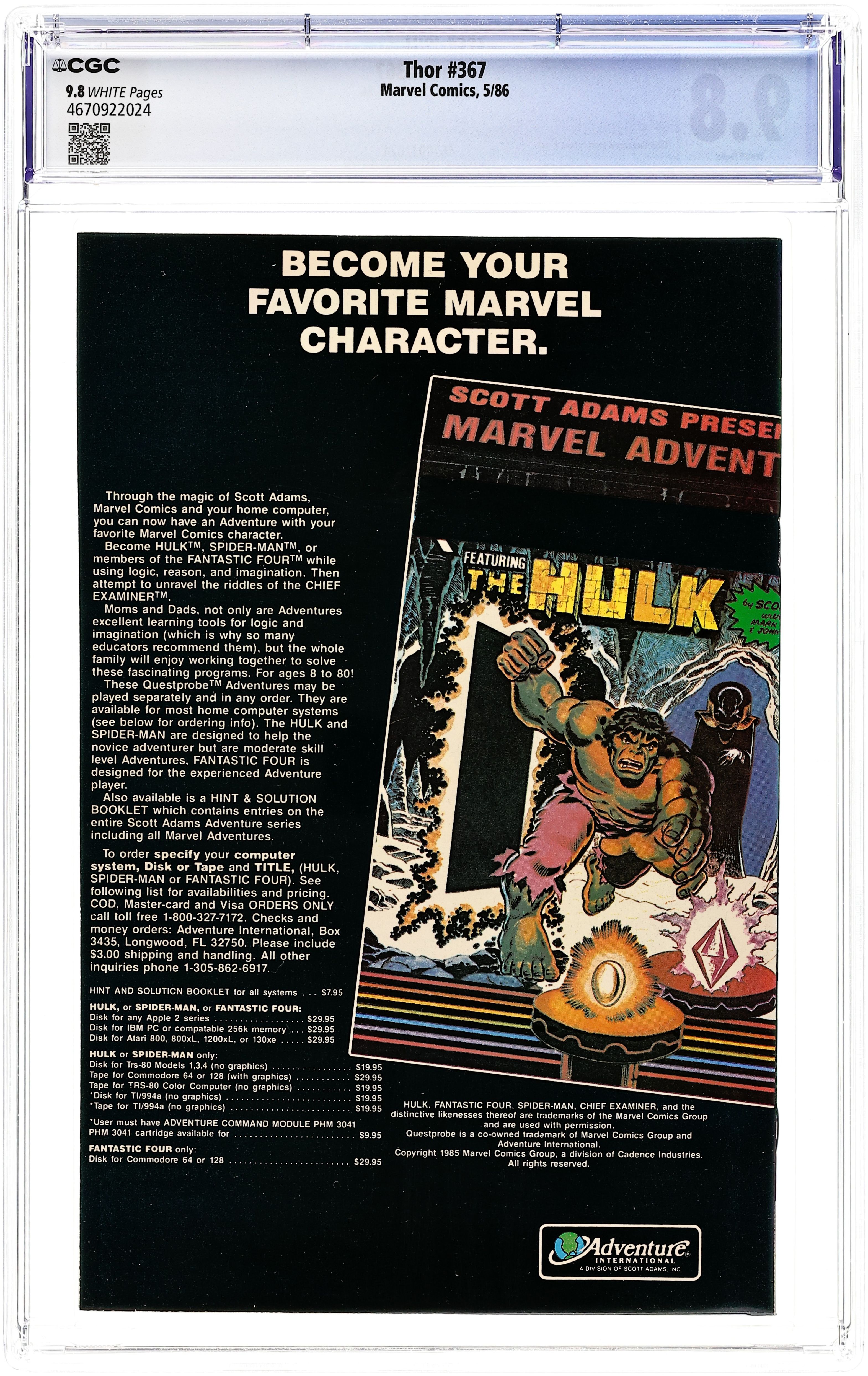 Tags: Marvel Legacy Numbering: Thor (part 364), ThorThor (1962 Marvel 1st Series Journey Into Mystery) 364 CGC 9.8