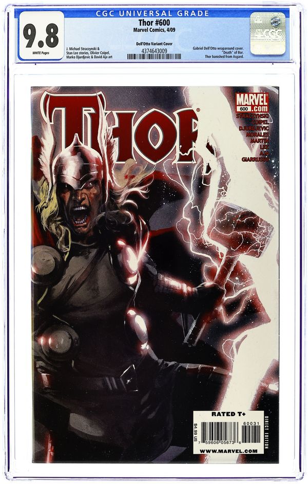 Limited Edition Variant Cover by Gabriel Dell'otto. Dark Reign tie-in - Art by Olivier Coipel, Marko Djurdjevic, Mark Morales, David Aja & Chris Giarrusso. Plus - reprint material from Journey Into Mystery #106, 107, 112, 113 & 115 by Stan Lee, Jack Kirby & Vince Colletta. The mighty God of Thunder hits a major milestone! THOR goes back to its classic numbering for this issue 600 mega-event, and even Stan 'The Man' Lee joins the party with an all-new story! J. Michael Straczynski and Olivier Coipel bring their widely acclaimed run to a major culmination! And Chris Giarrusso lays down an epic Mini Marvels Thor adventure! PLUS jaw- dropping wraparound covers by Olivier Coipel and Marko Djurdjevic! Miss this issue?! We say thee NAY! 104 PGS./Rated T+ Cover price $4.99.