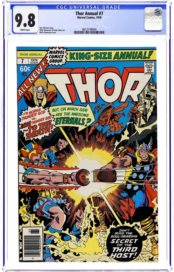 The Eternals Saga: Part 1 of 20 - The Eternals guest star in "And Ever--the Eternals!" Script by Roy Thomas, pencils by Walt Simonson, inks by Ernie Chan. Simonson cover. NOTE: Story continues in Thor #283. Cover price $0.60.