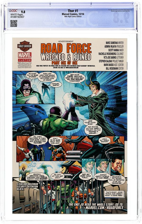 Tags: ThorThor (2014 Marvel 4th Series) 1HASTINGS CGC 9.8 Ferry Hastings Variant