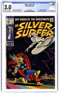 "The Good, the Bad, and the Uncanny!" Guest-starring Thor. Written by Stan Lee. Art by John Buscema and Sal Buscema. Cover by John Buscema. When the Silver Surfer ventures to fabled Asgard, home of the Norse Gods, a misunderstanding sets the Sentinel of the Spaceways against the mighty God of Thunder. It's the Power Cosmic vs. godly might. It's Thor vs. the Silver Surfer in a battle that will truly shake the heavens! Includes the Watcher back-up "The Terror of Tim Boo Ba." Story by Stan Lee. Art by Howard Purcell and Paul Reinman. Low distribution. 68-page giant. Cover price $0.25.