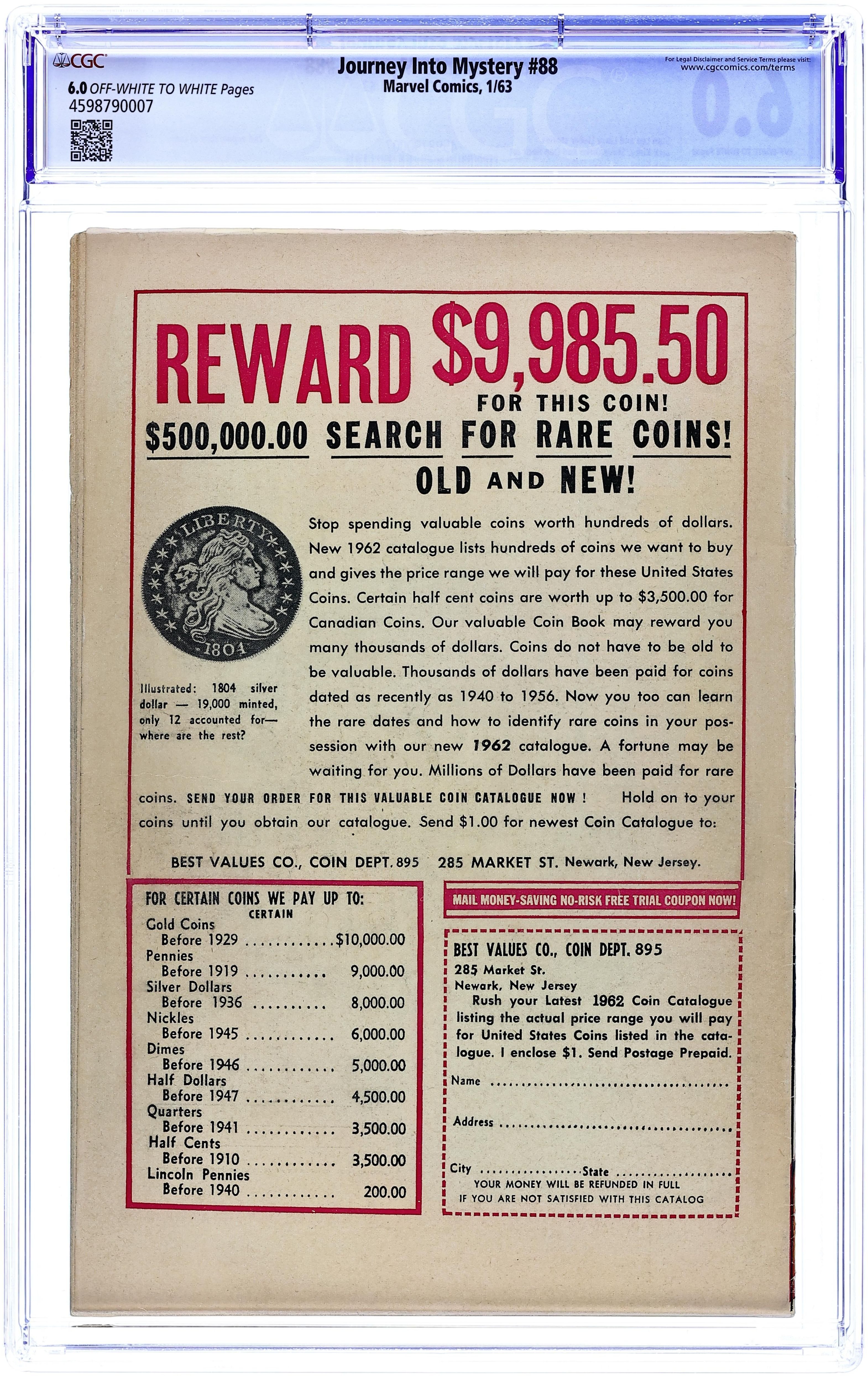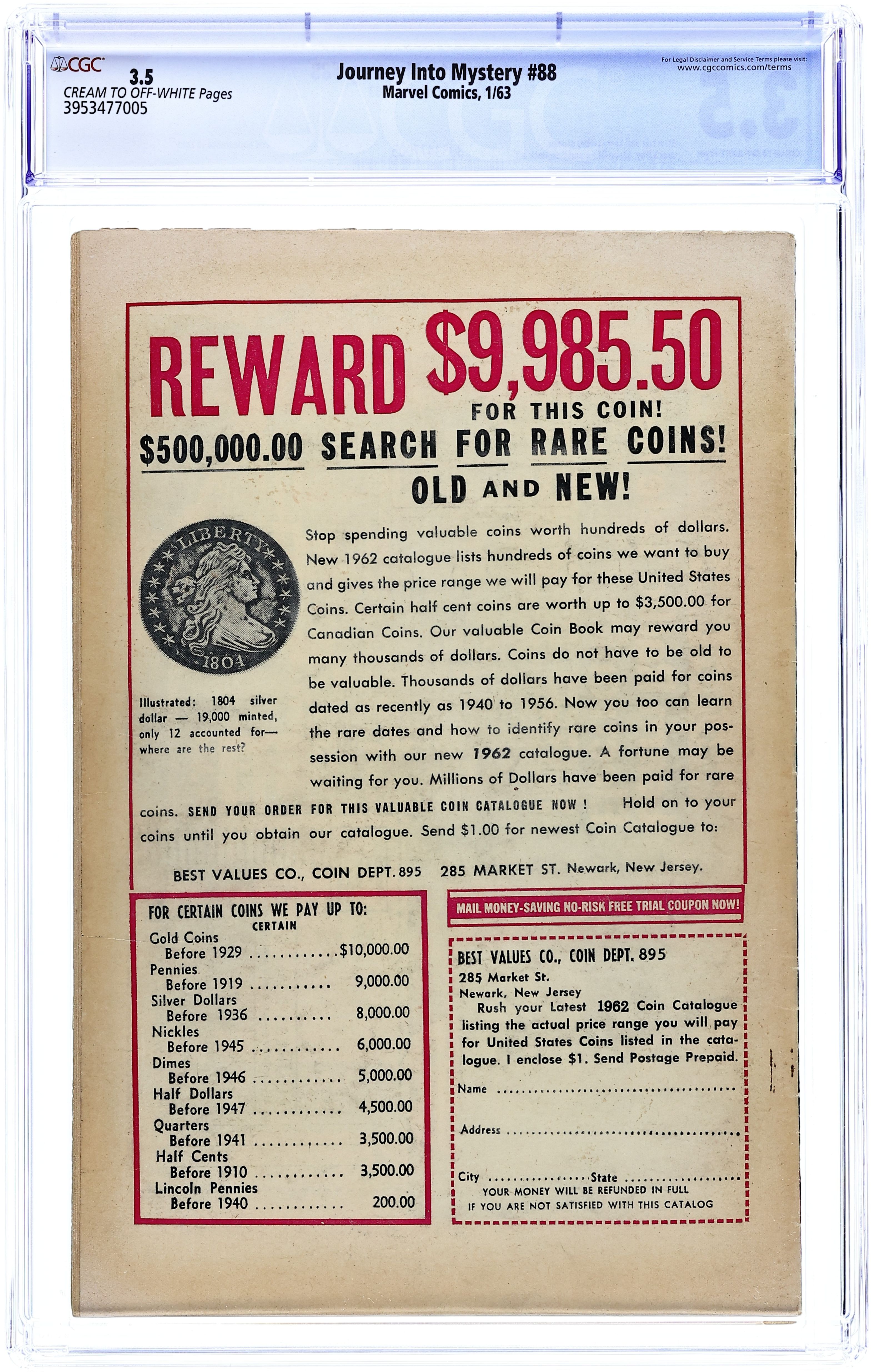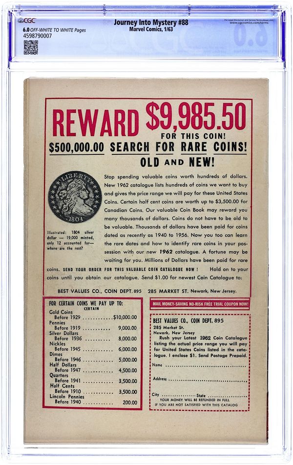 Tags: Marvel Legacy Numbering: Thor (part 89), ThorThor (1962 Marvel 1st Series Journey Into Mystery) 89 CGC 5.0