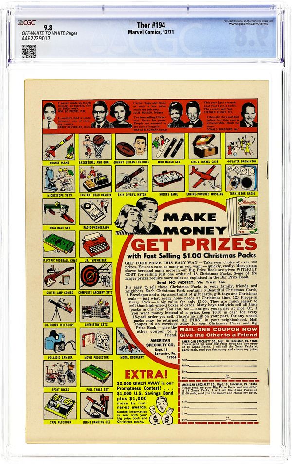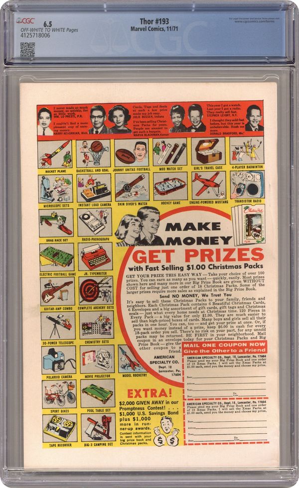 Ends Dec 8 9:43 PM CST Bid History 5 bids Current Bid $12 Your Secret Max Bid If you'd like to bid, please log in or register. Cover pencils by Jack Kirby, inks by John Verpoorten. "Ulik Unleashed!", script by Stan Lee, pencils by Jack Kirby, inks by Bill Everett; ts a Three-ring circus as Thor takes on Ulik, the Ringmaster, and the Circus of Crime; After treating a strongman as Donald Blake, Thor becomes suspicious of the ringmaster who employed the doctors help; Will Thor be able to escape this funhouse? Appearance by Loki. 36 pgs., full color. $0.15. Cover price $0.15.