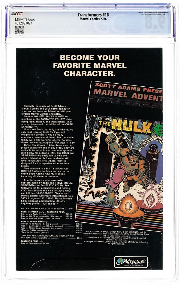 Tags: TransformersTransformers (1984 Marvel) 18D CGC 9.6