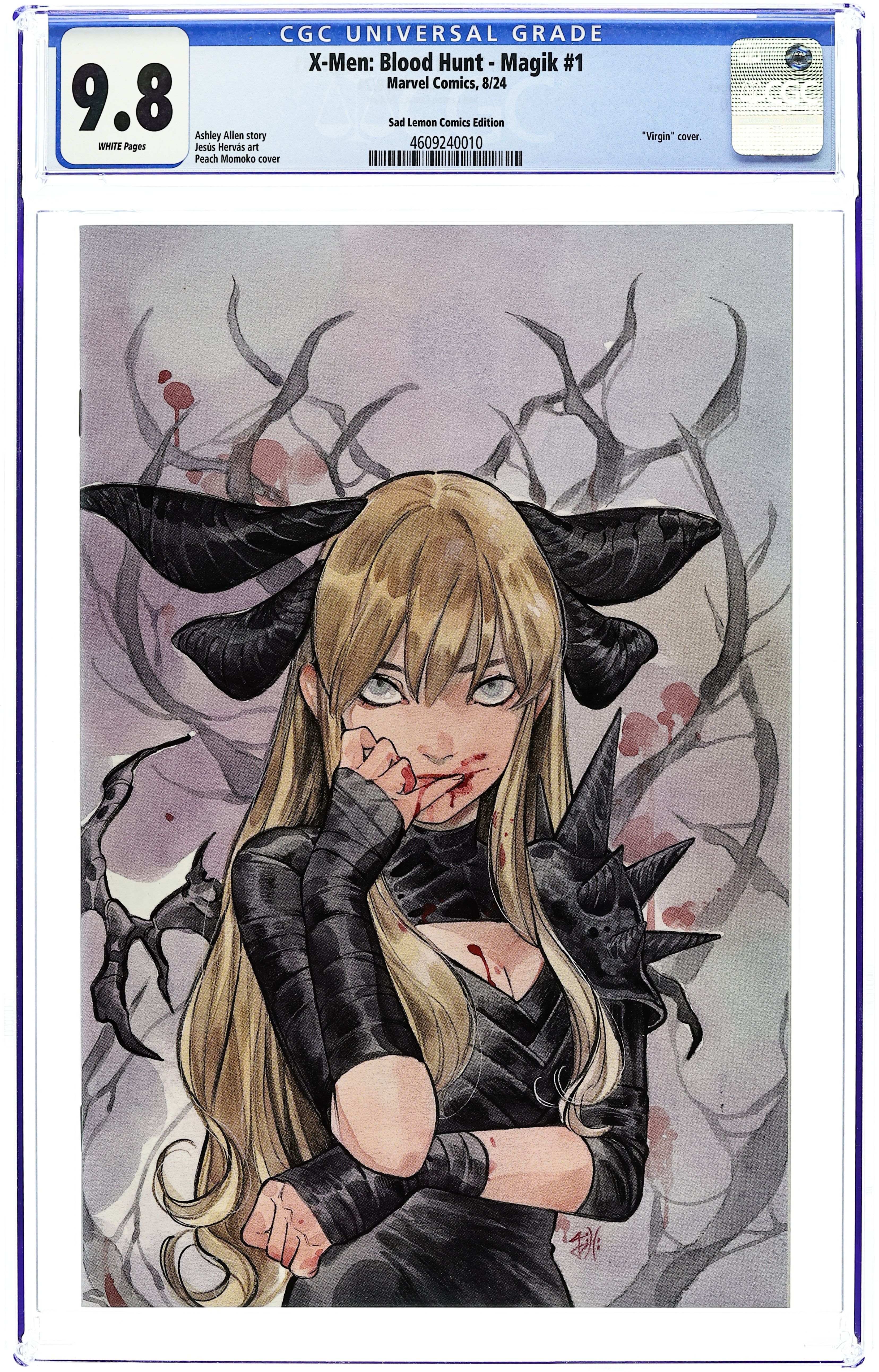 Sad Lemon Comics Exclusive Virgin Cover by Peach Momoko. Written by Ashley Allen. Art by Jesus Hérvas. • After the Fall of the House of X, Illyana Rasputina has returned to her homeland to search her soul and steel it for what comes next. • But how will she protect her first home when a vampire army descends on Russia, seeking to turn it into a living hell? • She may have been forged in the fires of Limbo, but has it prepared her for the Blood Hunt? 28 pages, full color. Rated T+ Cover price $3.99.