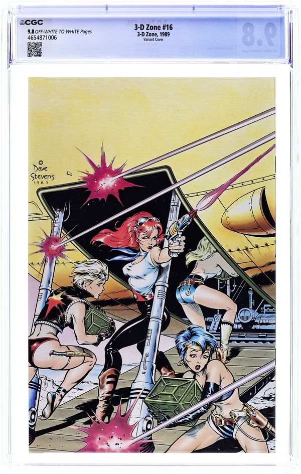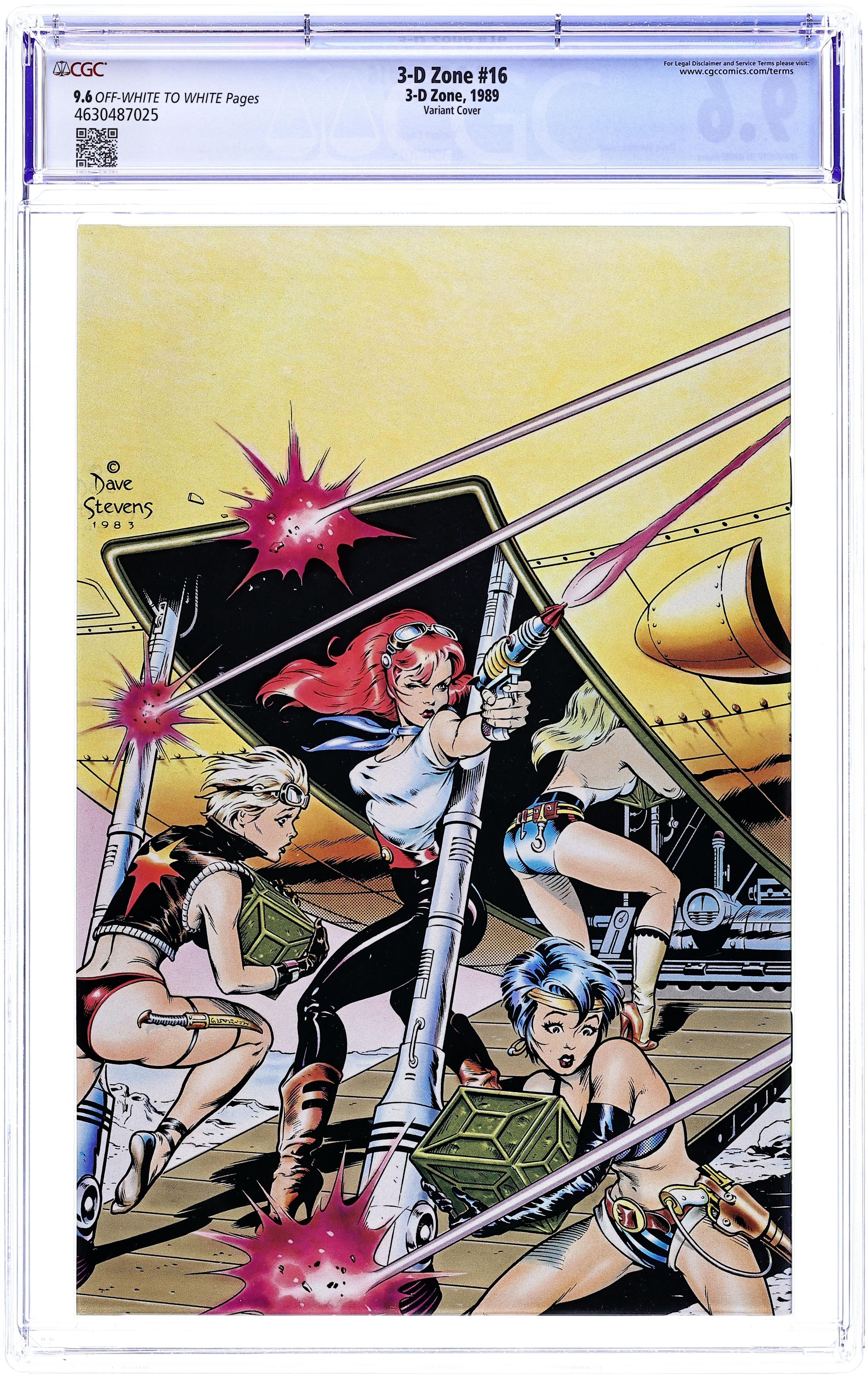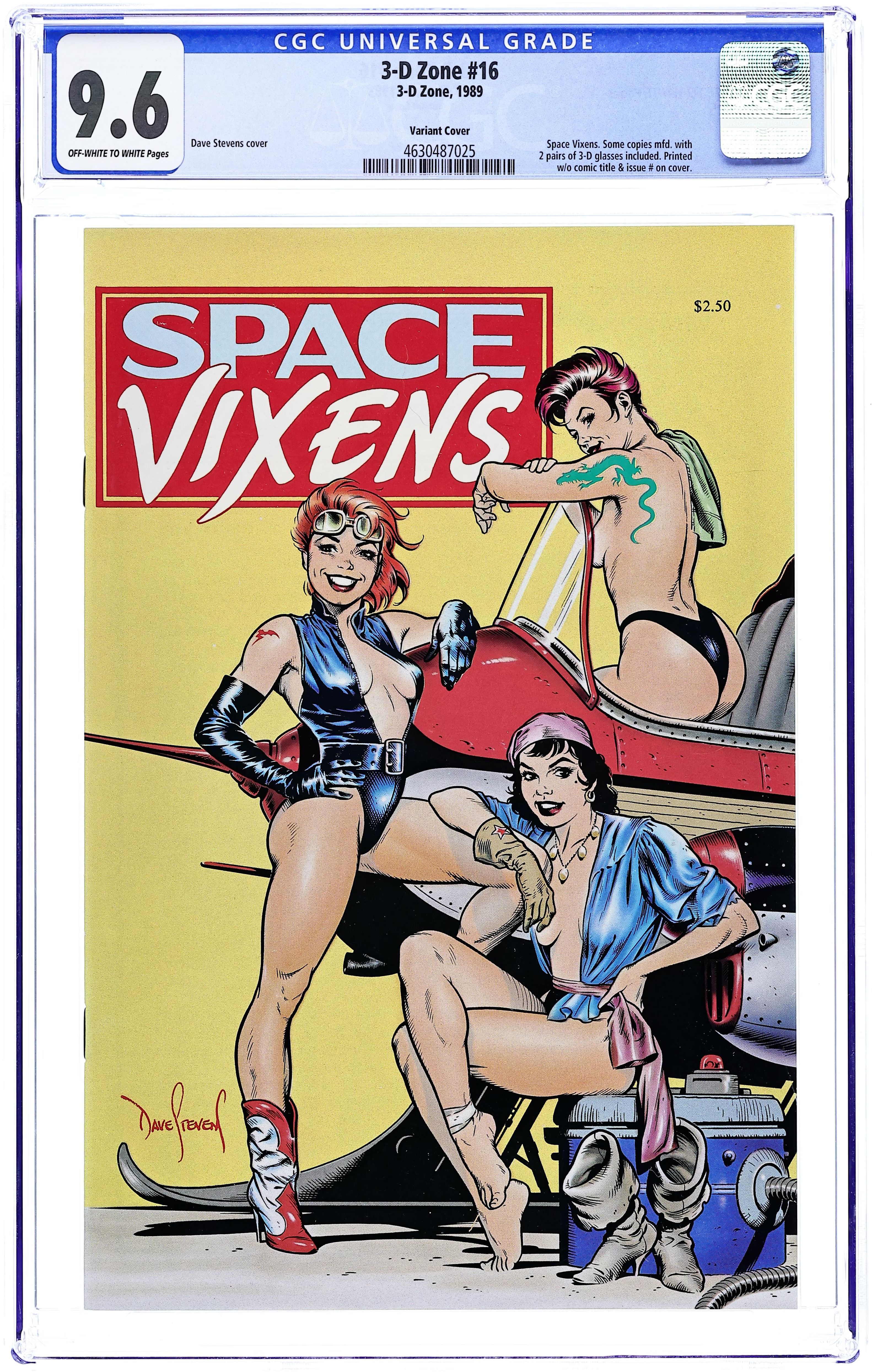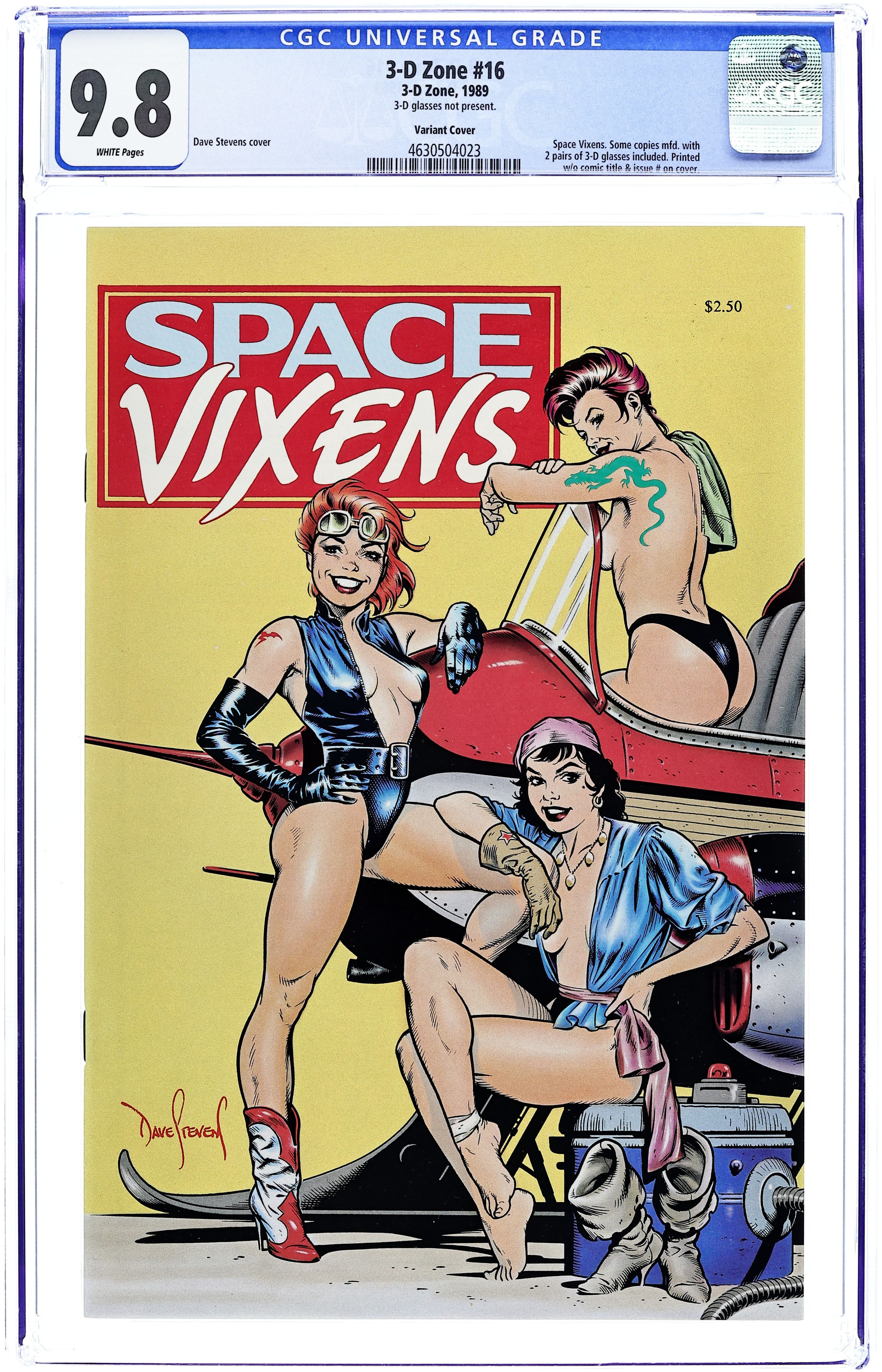 Minimal Trade Dress Variant Cover. #16 Space Vixens. Dave Stevens story and art. Bruce Jones script. These copies appear to have been distributed without 3-D glasses bound in. Cover price $2.50.