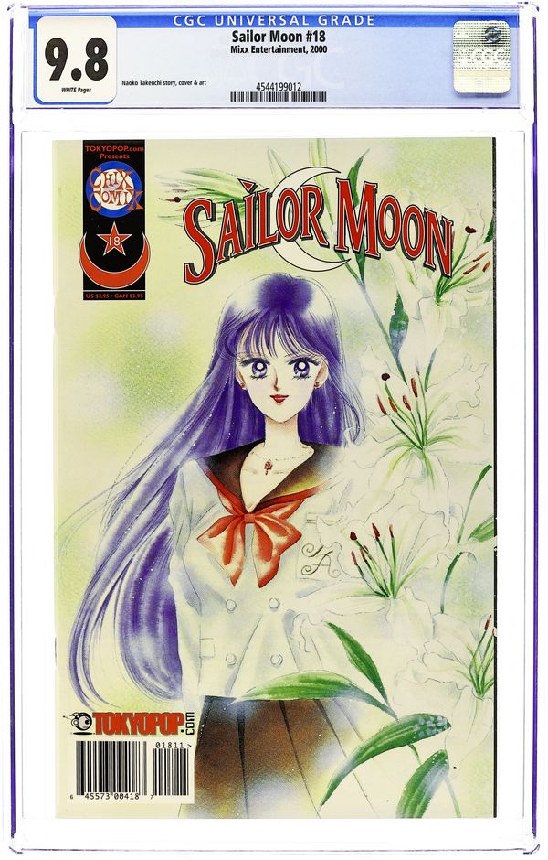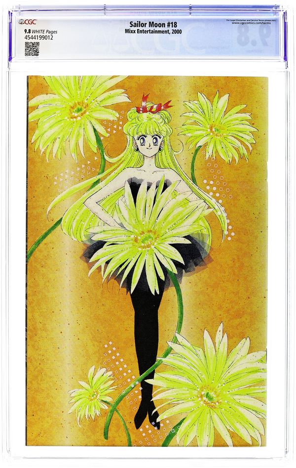 Story and Art by Naoko Takeuchi. Naoko Takeuchi pens a brief note commemorating the end of the Sailor Moon series and thanking her readers. Luna's Wish Upon A Star, script by Naoko Takeuchi and Anita Sengupta, art by Naoko Takeuchi and Roselyn Santos; Sailor Moon, the inner and the outer senshi and Sailor Chibi-Moon all battle to hold back Princess Snow Kaguya and her minions; Meanwhile Luna, with some last minute help from Sailor Moon's Silver Crystal, struggles to keep Kakeru from giving up. Naoko Takeuchi writes about the production of the second Sailor Moon movie, "Princess Kaguya's Lover", and the serialization based on the film that appeared in Nakayoshi magazine; She also shares some of her production sketches from the undertaking. 52 pgs., full color. Cover price $2.95.