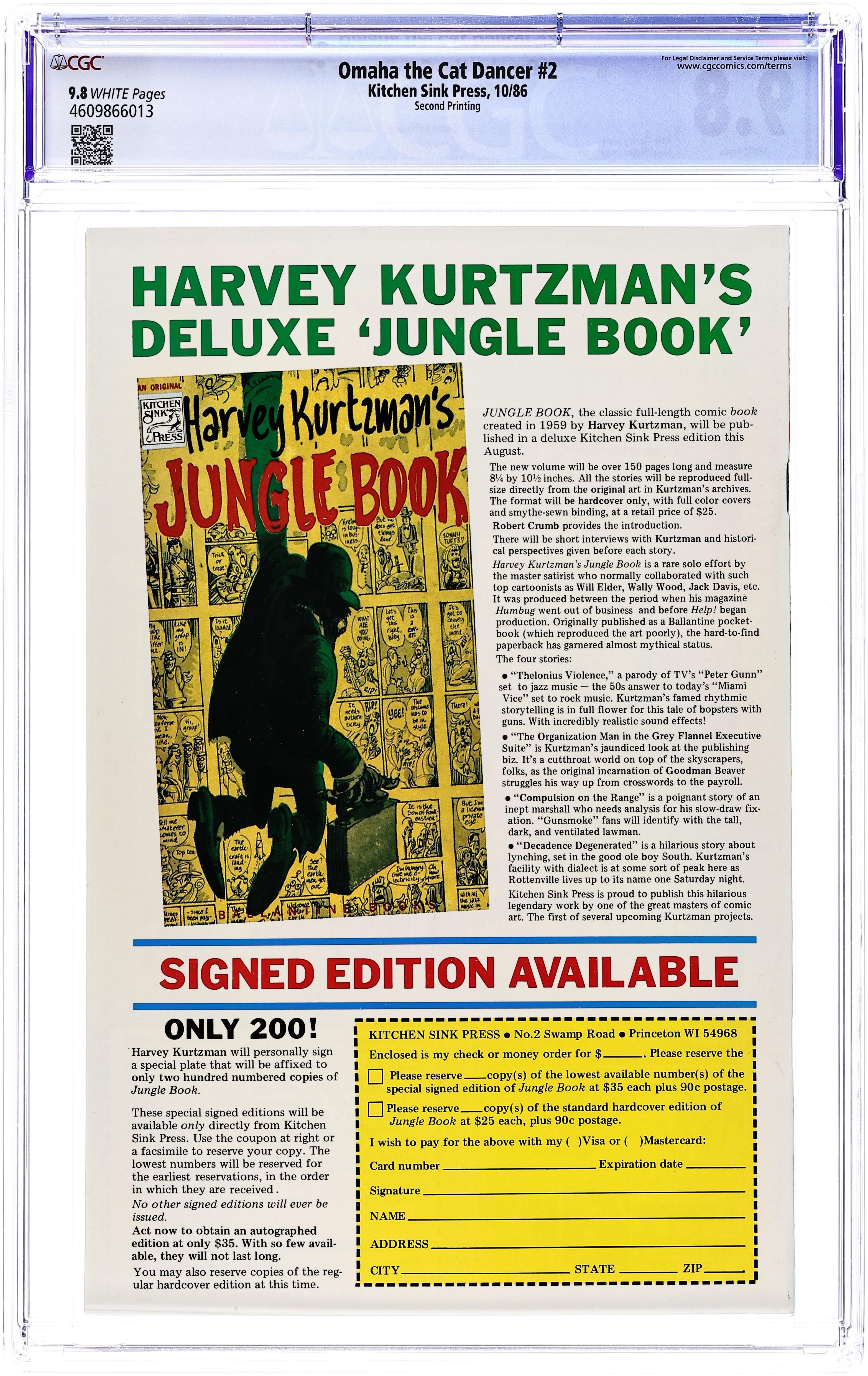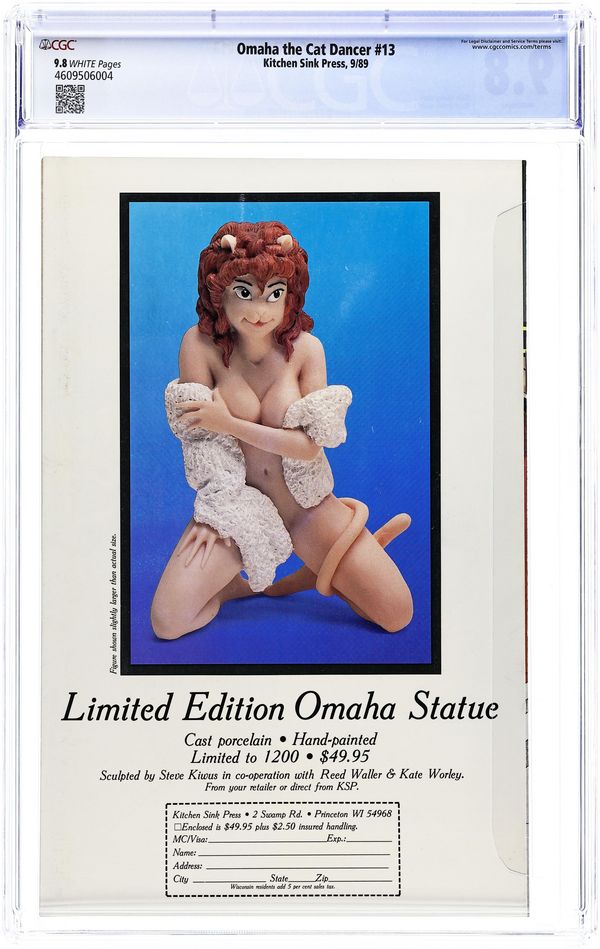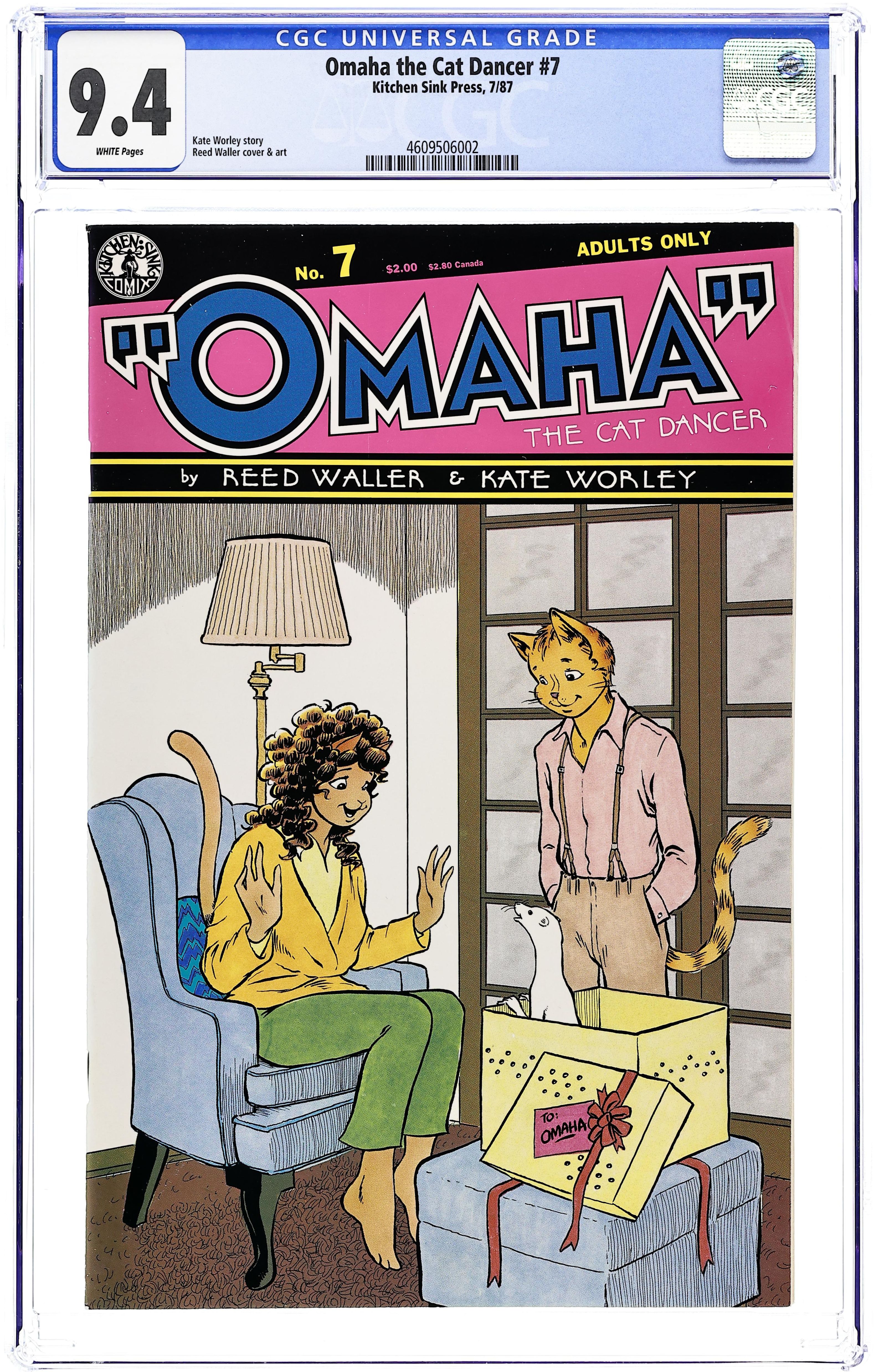 2nd or later printing by Kitchen Sink or Fantagraphics. Previously printed by Steeldragon Press. "Omaha" the Cat Dancer is an erotic comic strip and later comic book created by artist Reed Waller and writer Kate Worley. Set in fictional Mipple City, Minnesota in a universe populated by anthropomorphic funny animal characters, the strip is a soap opera focusing on Omaha, a feline exotic dancer, and her lover, Chuck, the son of a business tycoon. Mature Readers. 28 pages. Cover price $2.50.